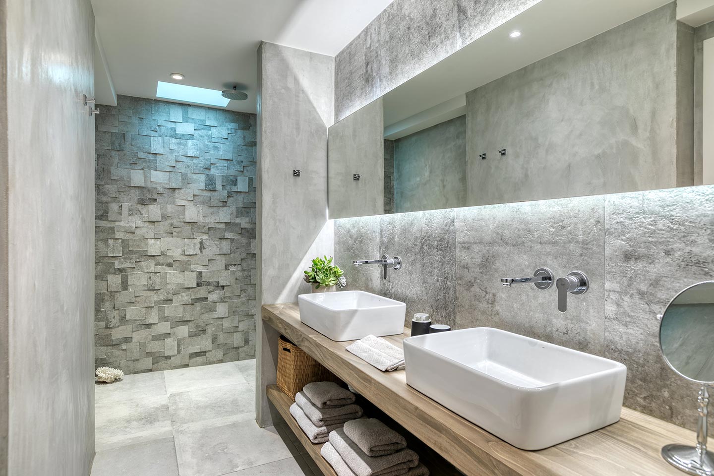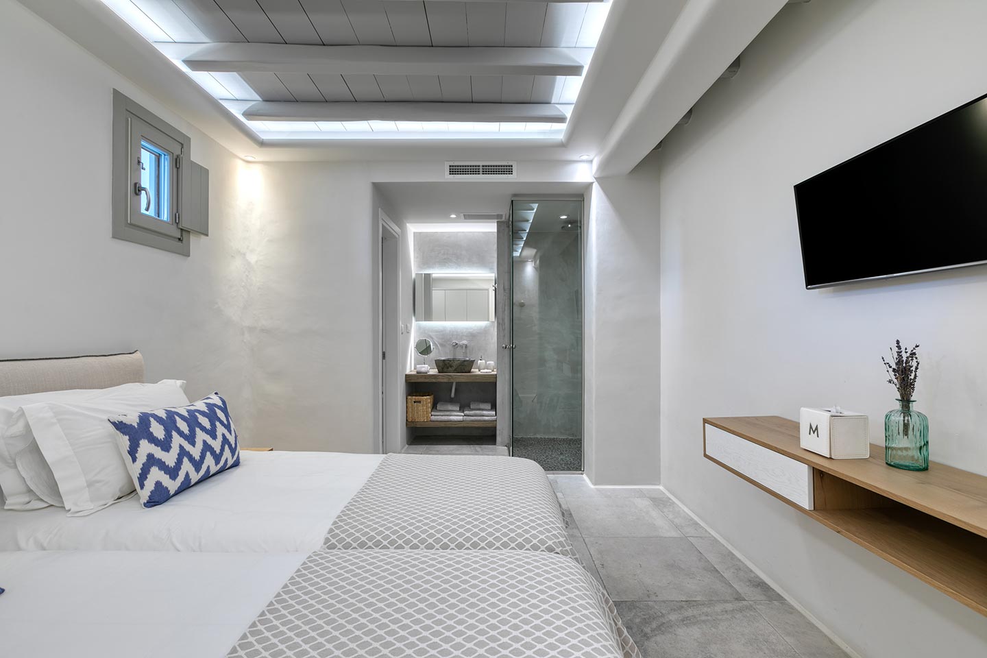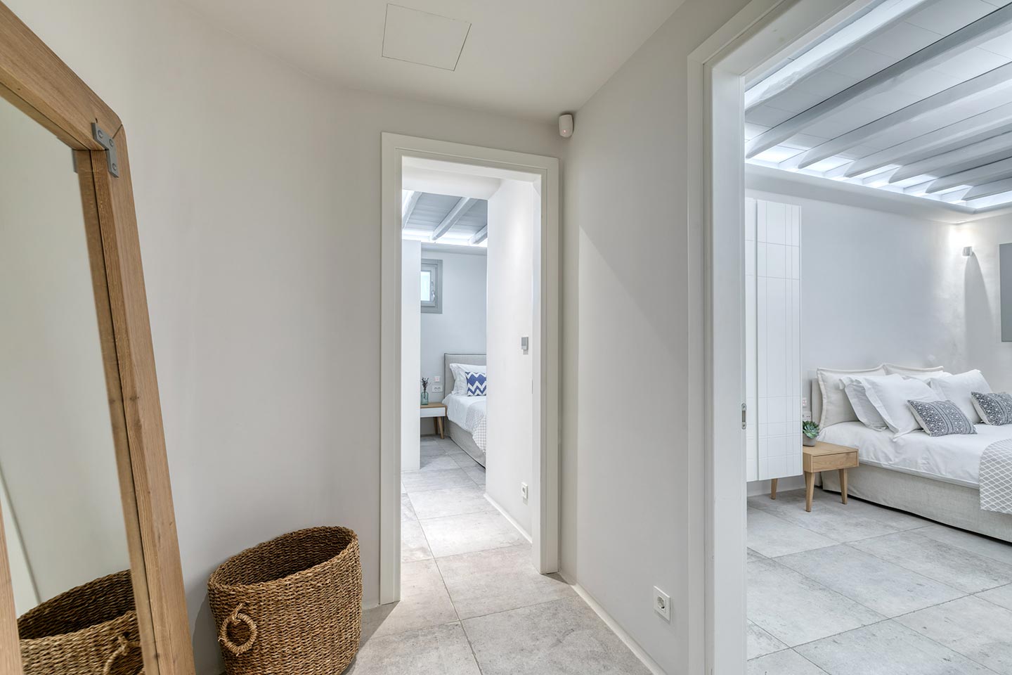 Staying in this beautiful house that overlooks the sparkling Mykonian coastline will help create unforgettable memories… The villa’s amenities include 2 double bedrooms with ensuite bathrooms on the ground floor, a living area, a fully equipped open plan kitchen and a toilet in the entrance level and 2 master bedrooms with a sharing bathroom on the top floor. On the outside there are spacious dining and lounge areas and a BBQ. The new outdoor private hot tub compliments the aura of the night under the stars.