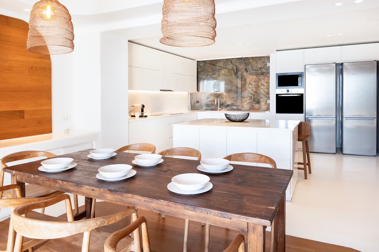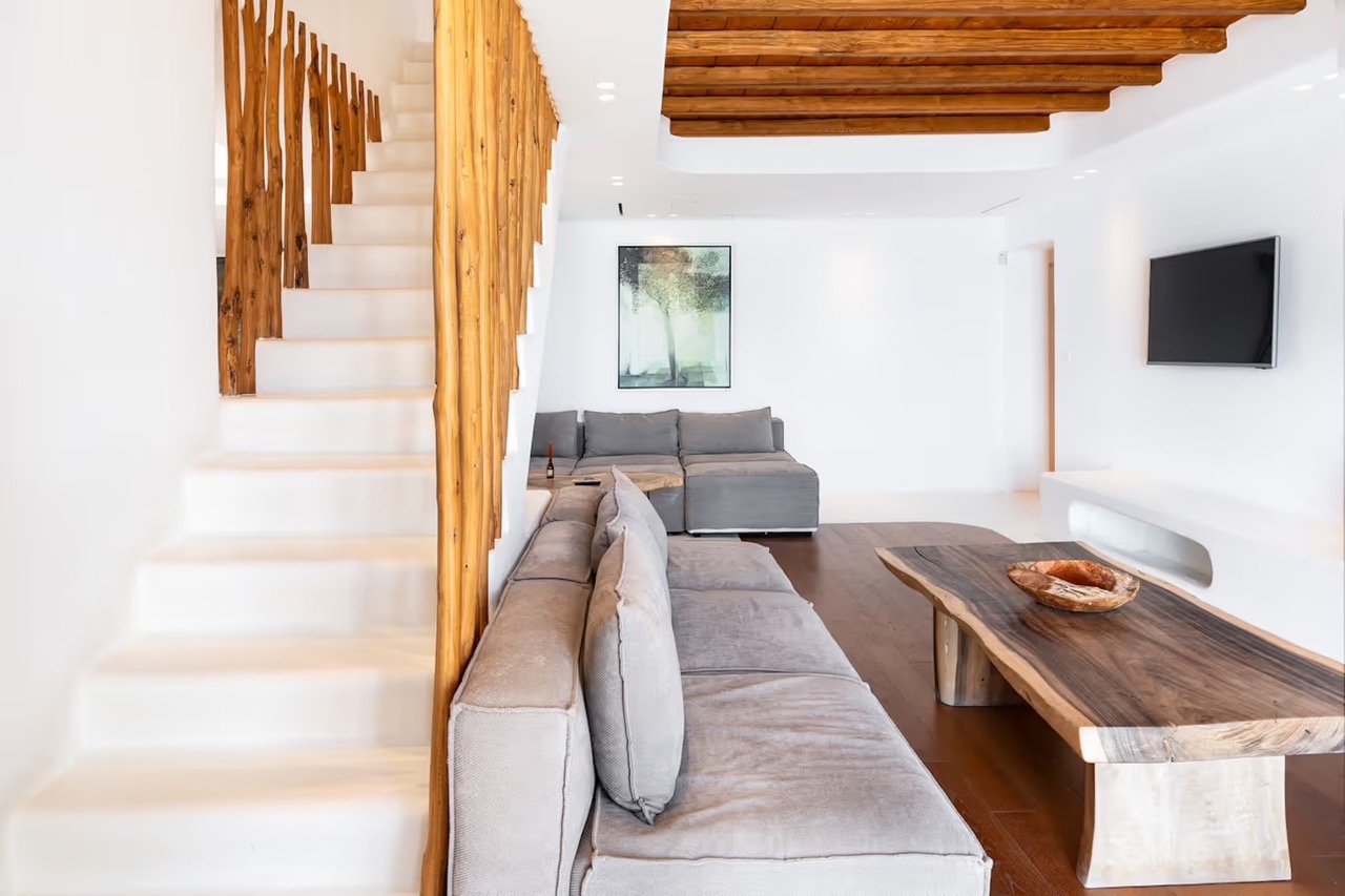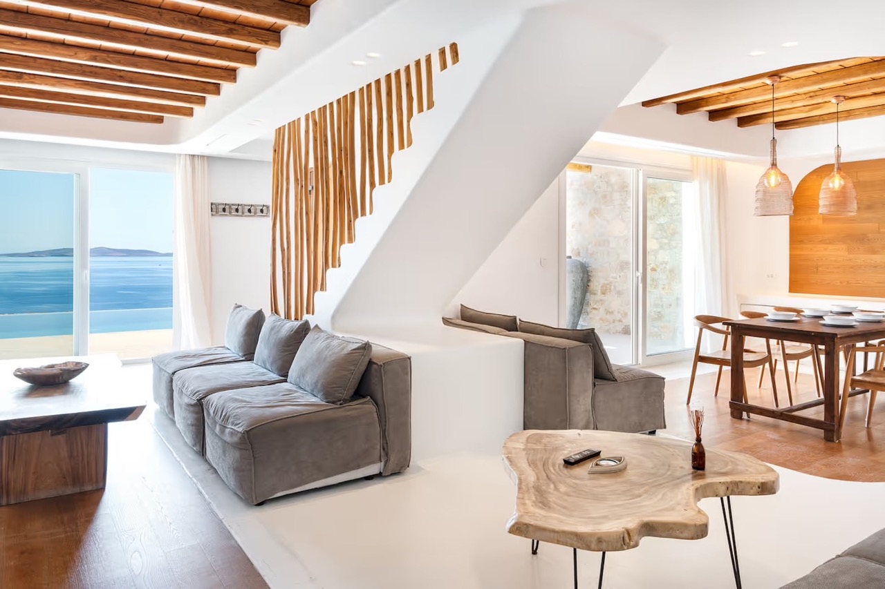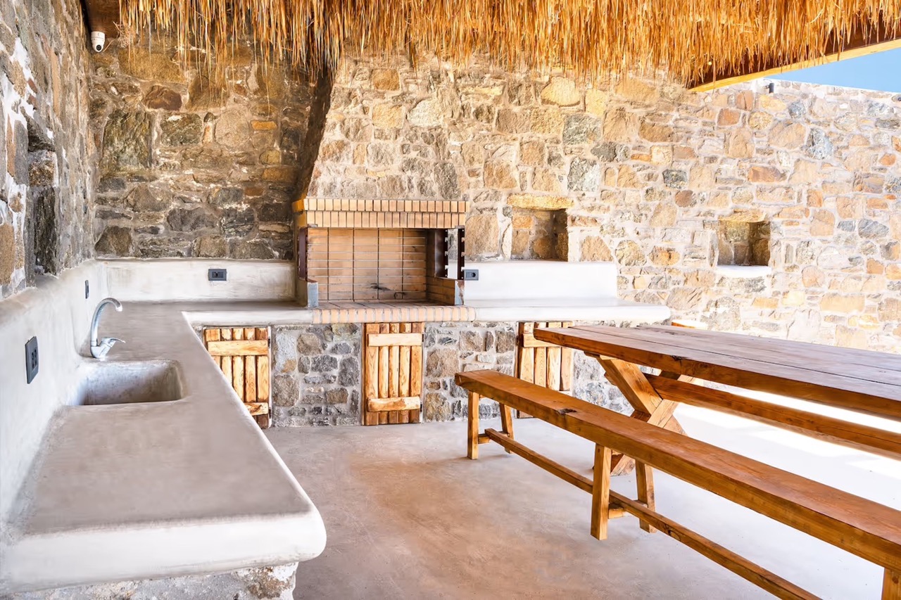 • Built-in dining table & Mykonian-style bar