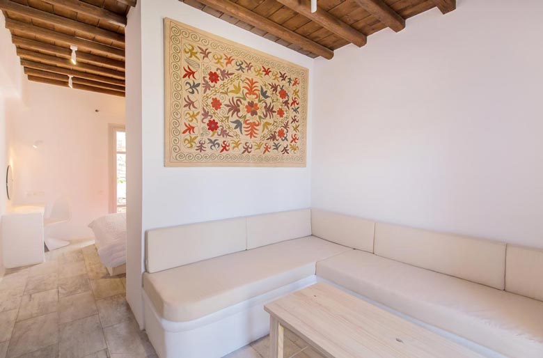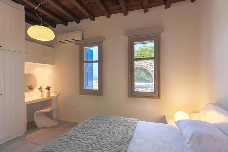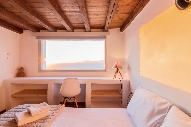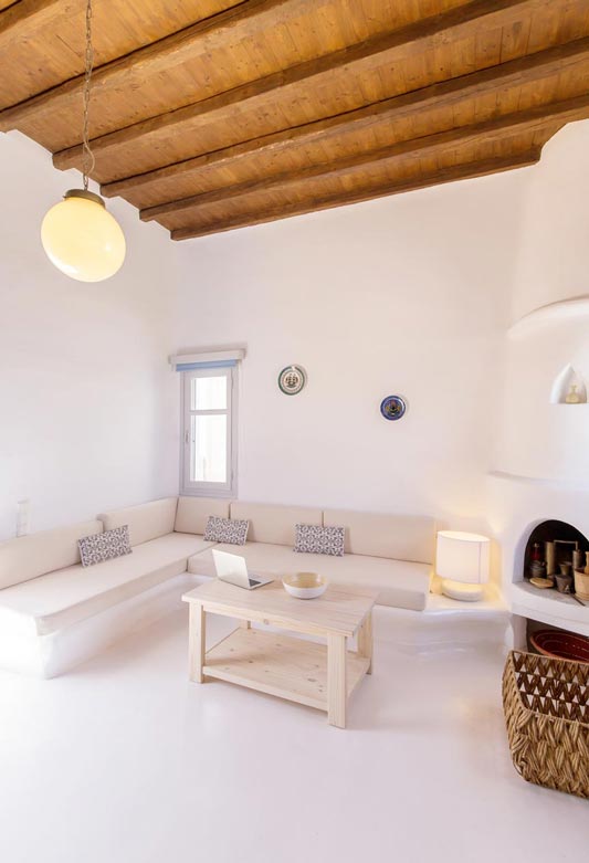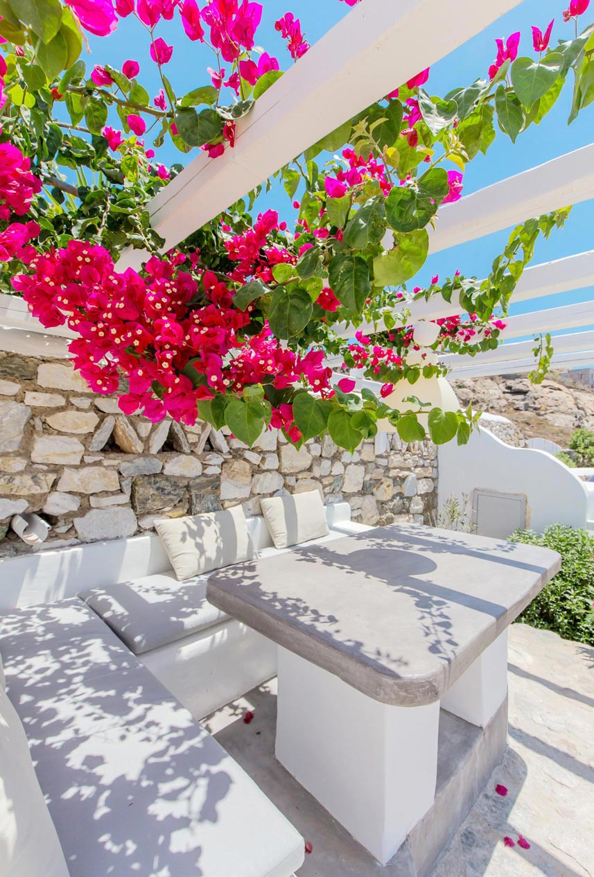 Located at Pouli hill in Kanalia area, one of the most famous spots in Mykonos, the villa offers charming outdoor spaces with sensational sunset views over the Aegean Sea and the tiny island of Delos. Its location is ideal for those that want to enjoy a romantic setting while at the same time being near some of the most popular beaches of Mykonos like Agios Ioannis beach and Ornos beach. The villa features 3 bedrooms plus one mezzanine with a sofa bed and 4 bathrooms, a fully equipped kitchen and beautiful dining and lounge areas inside and outside. Outside, there is a private area to relax and enjoy the sun and the sunset!