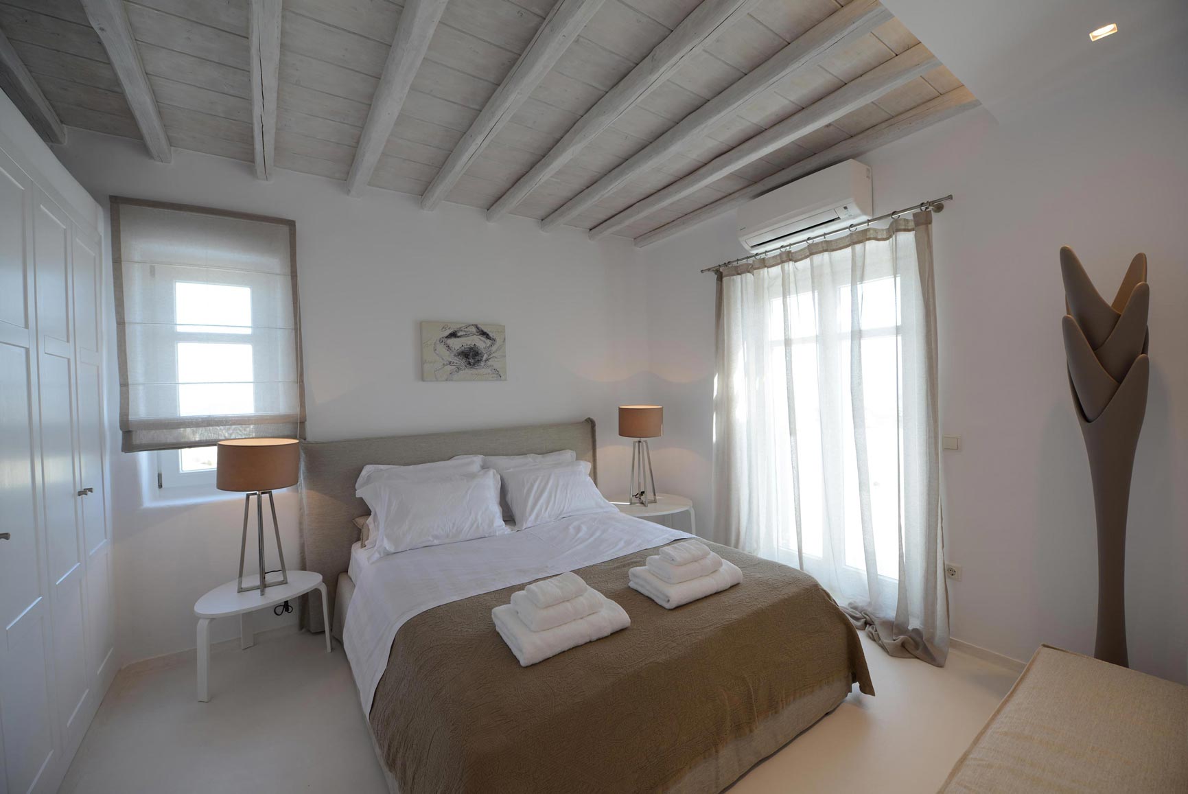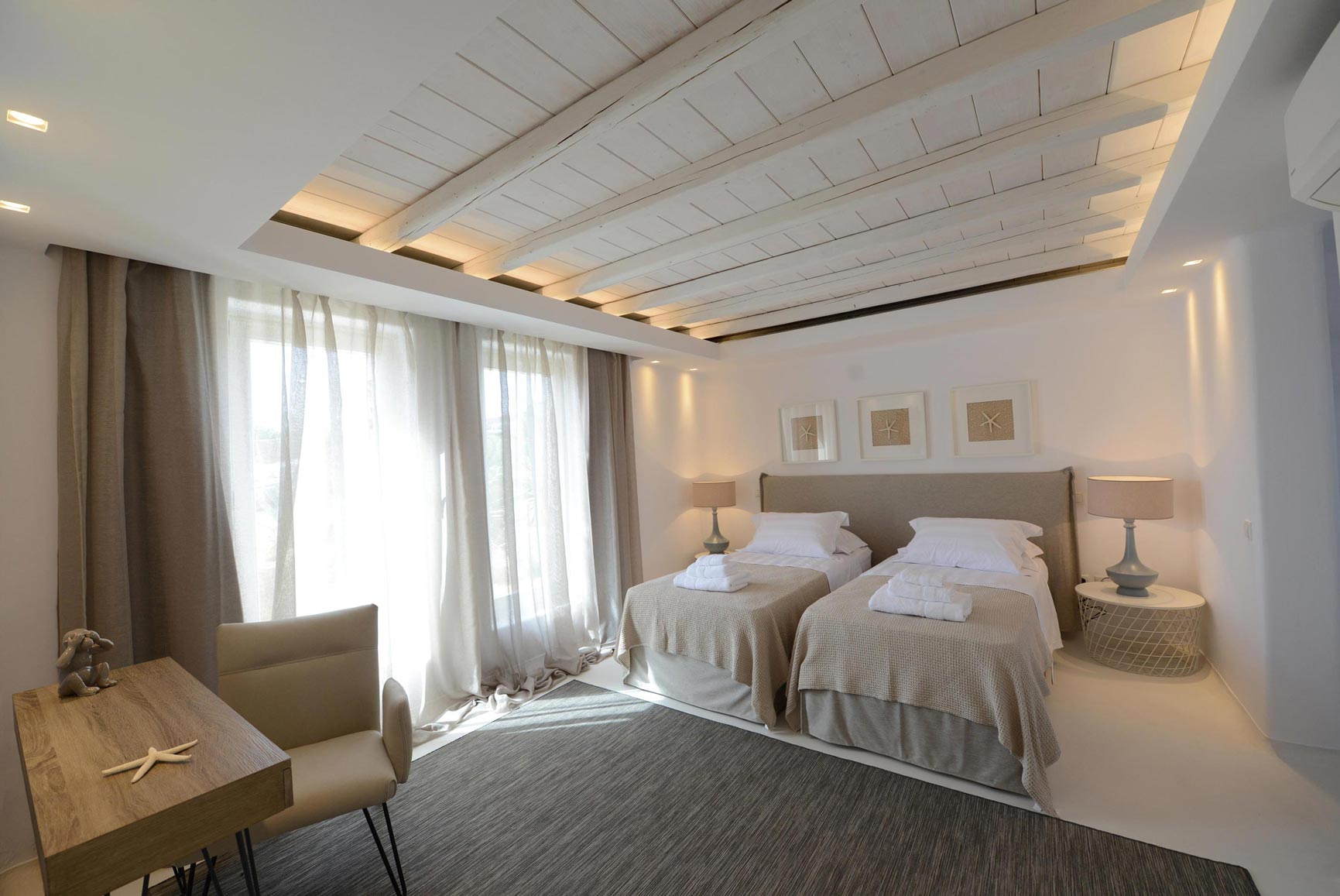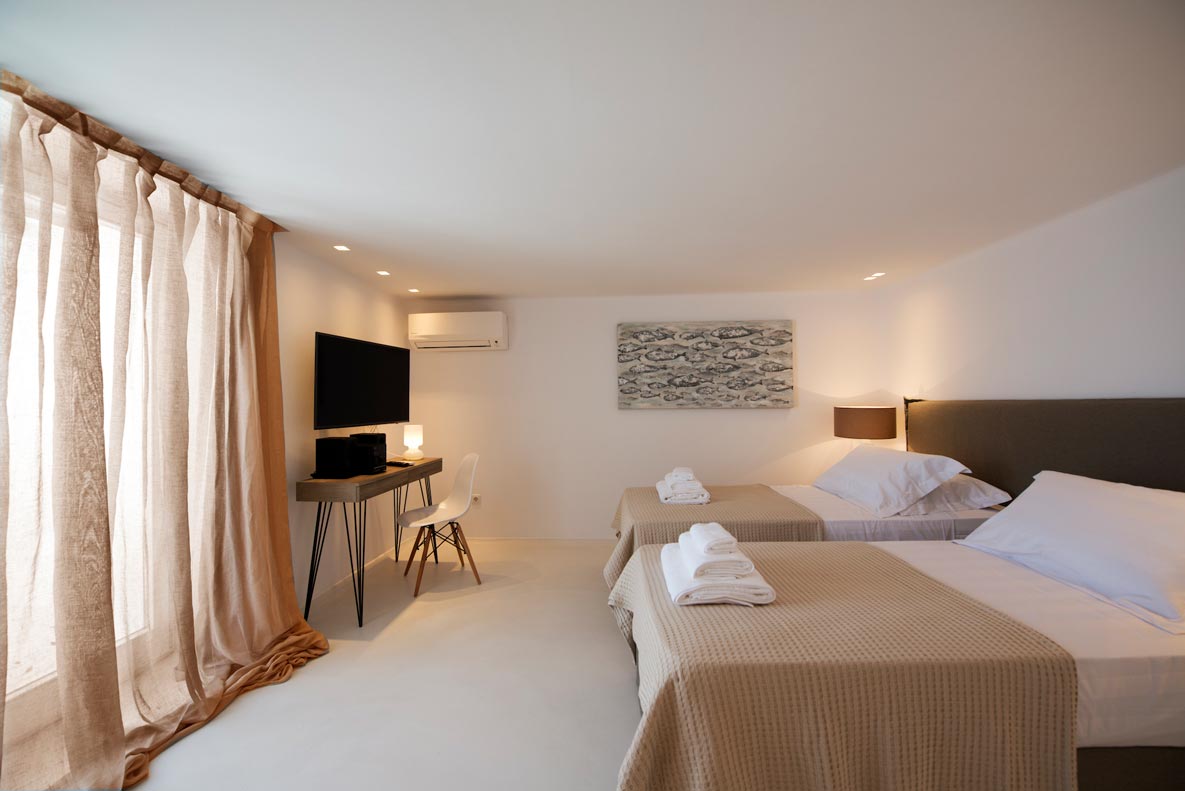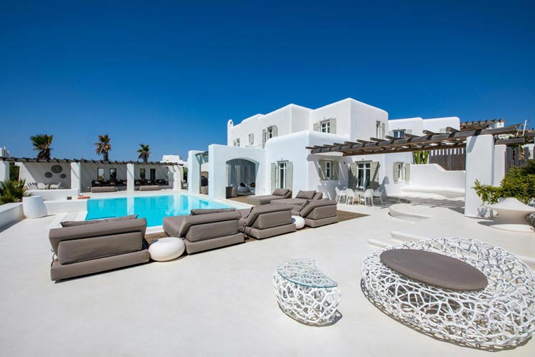 This is a 7 bedroom villa with private pool, set in a lovely panoramic position at Agia Sofia, Tourlos overlooking Mykonos Town & Aegean sea. Decorated and furnished using a minimalist approach, the villa has been made to the highest standards with all the luxury, comfort and facilities, even for the most discerning guests.