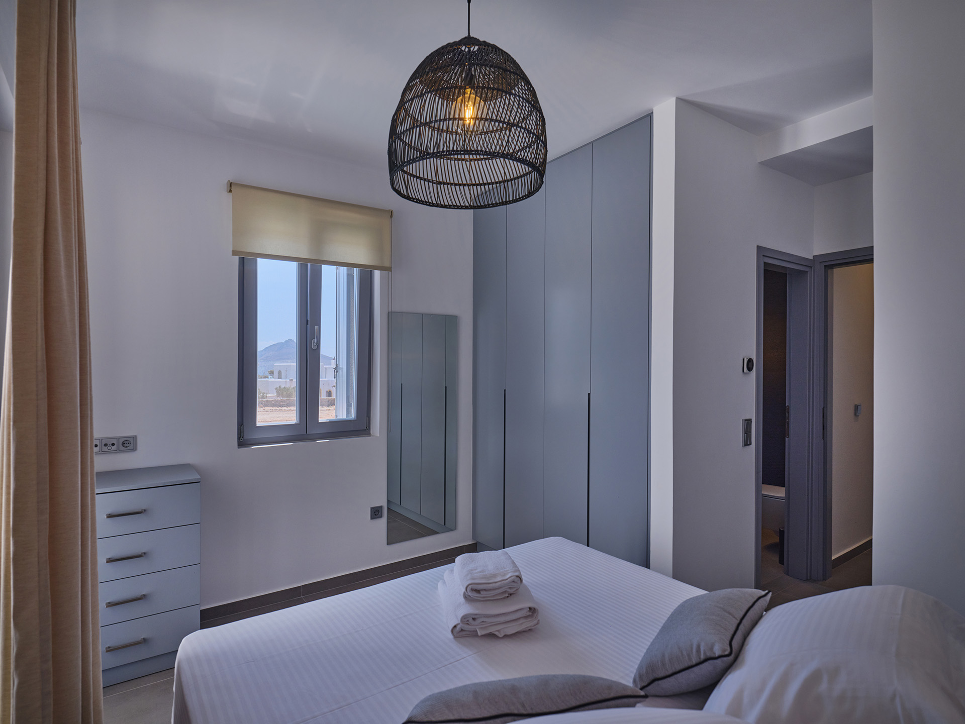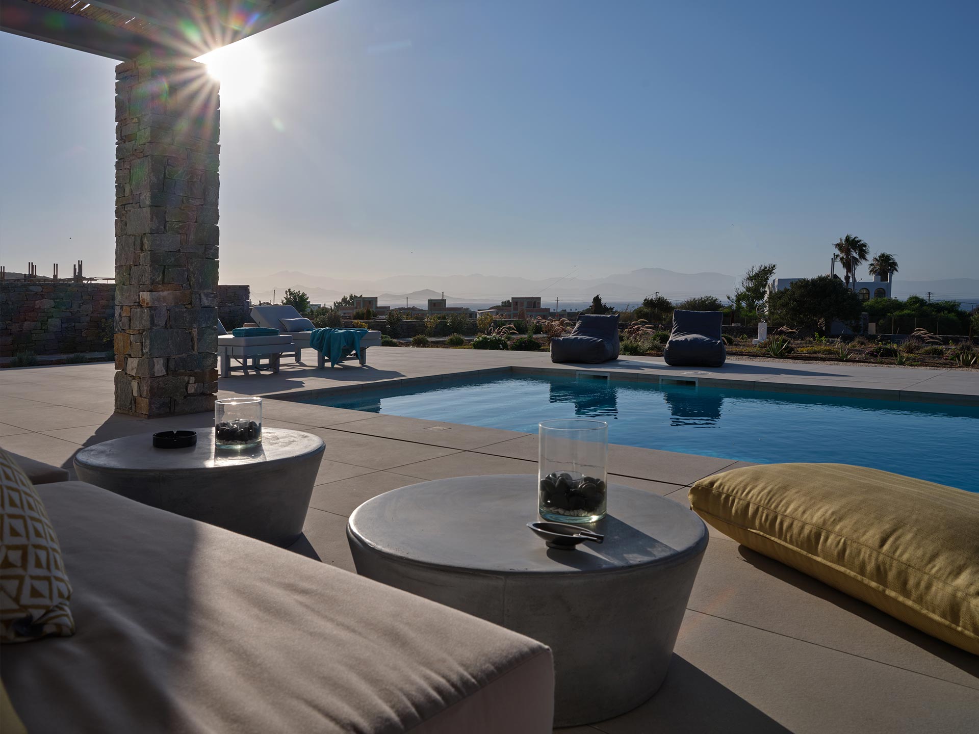 Villa Olivia is a luxurious residence complex at Isterni Paros, 4 klm from the beautiful town of Naousa, with the picturesque port and the exciting night life. Some of the most beautiful beaches of the island, like the Big and the Small Santa Maria, Ambelas and Kolimbithres, are just a few minutes’ drive away from the complex, while some others, such as Golden Beach, Molos, Kalogeros and Monastiri are a bit further, but the crystal-clear sea and the golden sand will reward even the most demanding visitors. The residences are amphitheatrically built, totally attuned in the surroundings, offering serenity, privacy and a unique view facing the island of Naxos.
