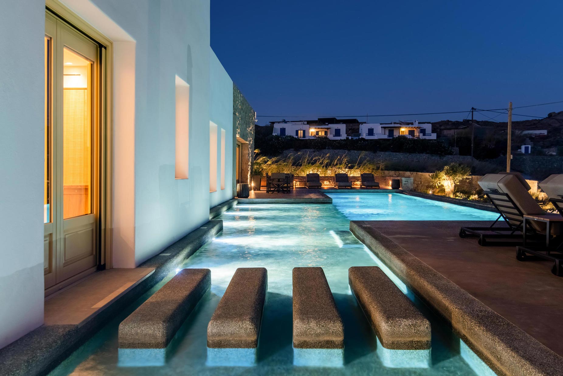 Unravel the tangle of Pandora, discovering one by one all the interesting, elegant, and tastefully made corners of this modern, luxurious, and brand new Mykonian house. A high-level team in the field of luxury home architecture supervised the creation of a unique holiday home that satisfies the tastes of its visitors with its modern construction, high-quality materials, and functionality.
