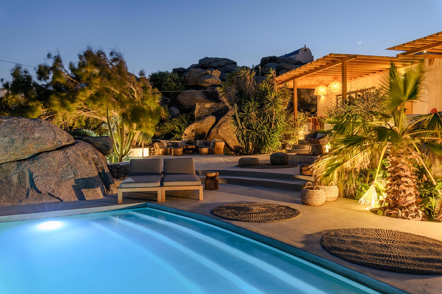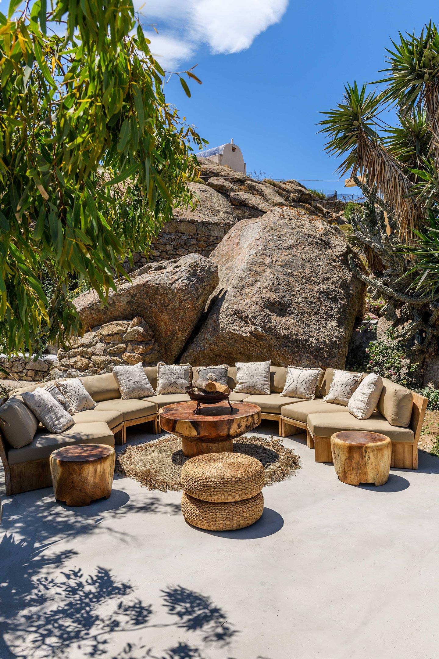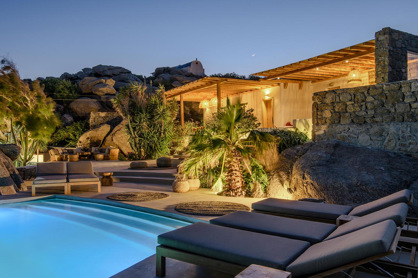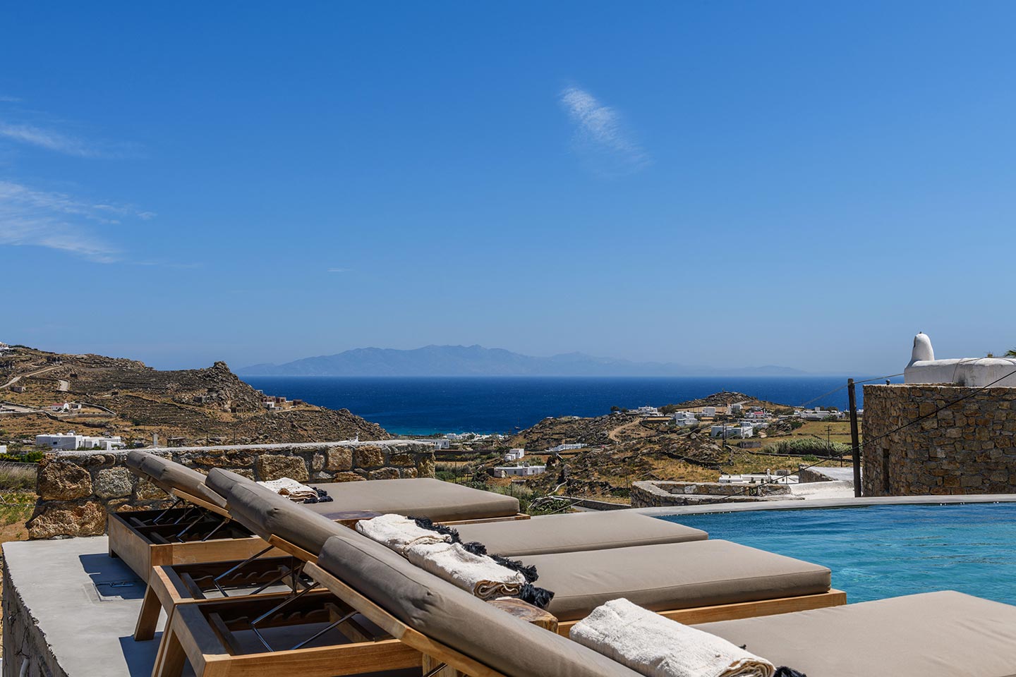 The location is convenient (15-20min walking, 3-5min drive) for all of the south and west beaches of Mykonos including venues like Scorpios, Soho House Rocs, Branco, Nammos, Kalua, Santanna, Paradise Beach Club, Cavo Paradiso and even Jackie-O.