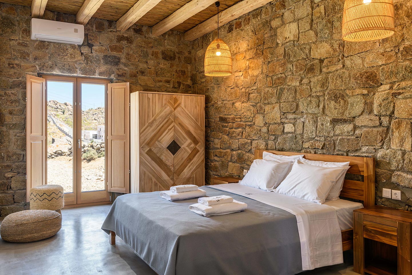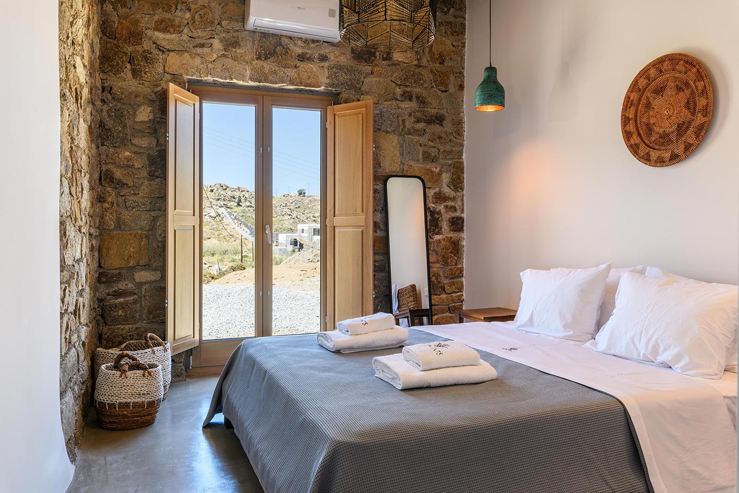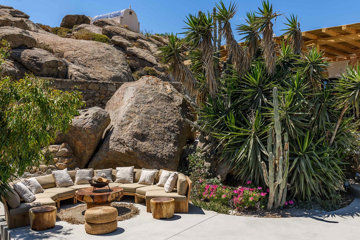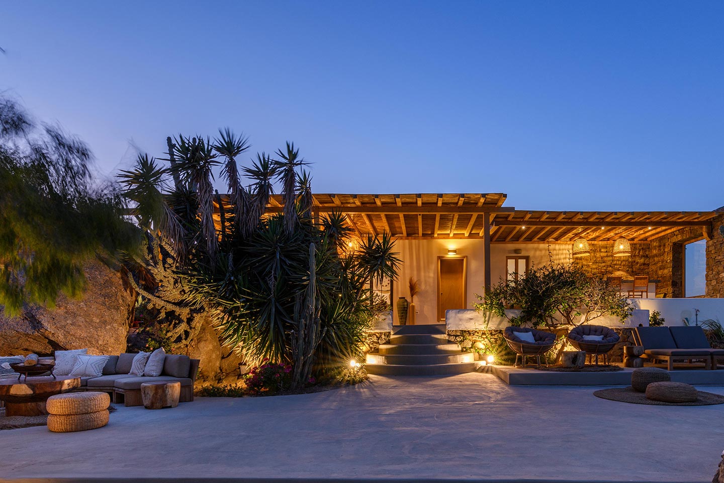 The location is convenient (15-20min walking, 3-5min drive) for all of the south and west beaches of Mykonos including venues like Scorpios, Soho House Rocs, Branco, Nammos, Kalua, Santanna, Paradise Beach Club, Cavo Paradiso and even Jackie-O.