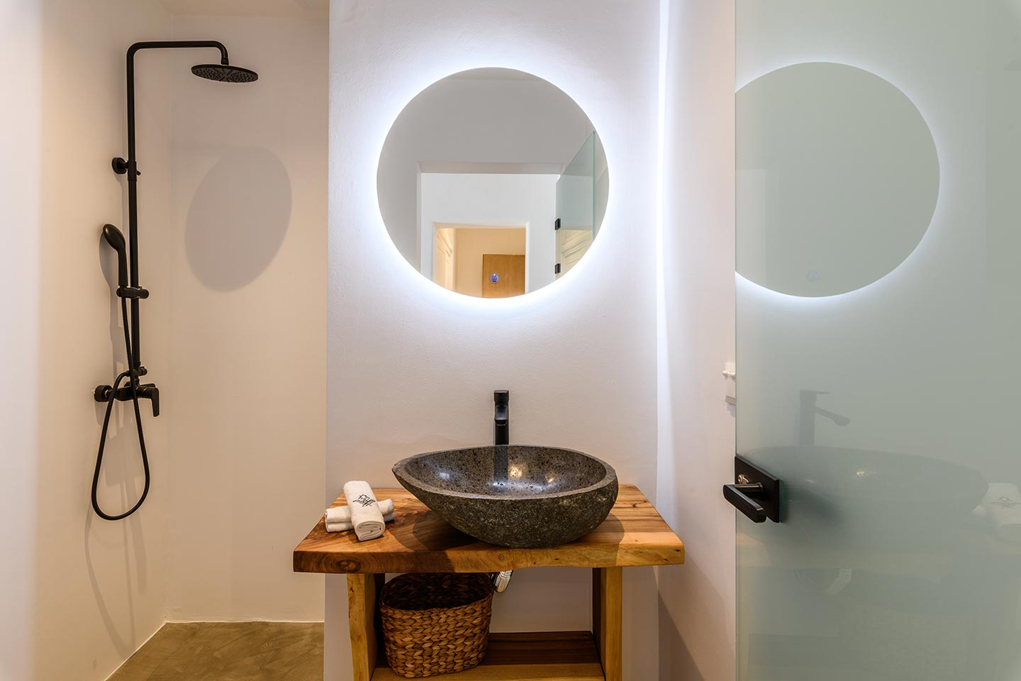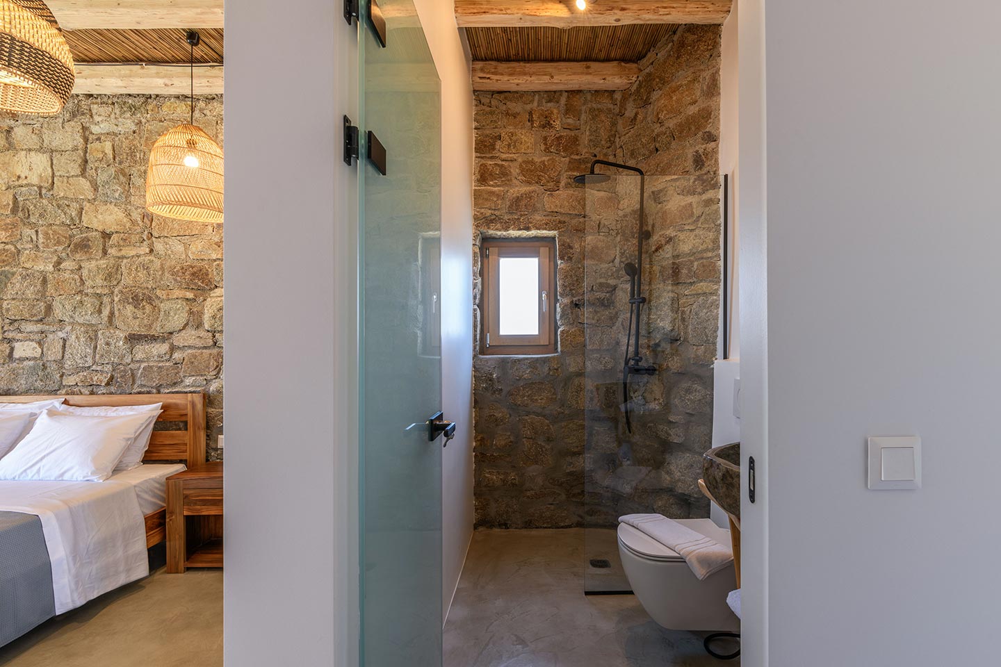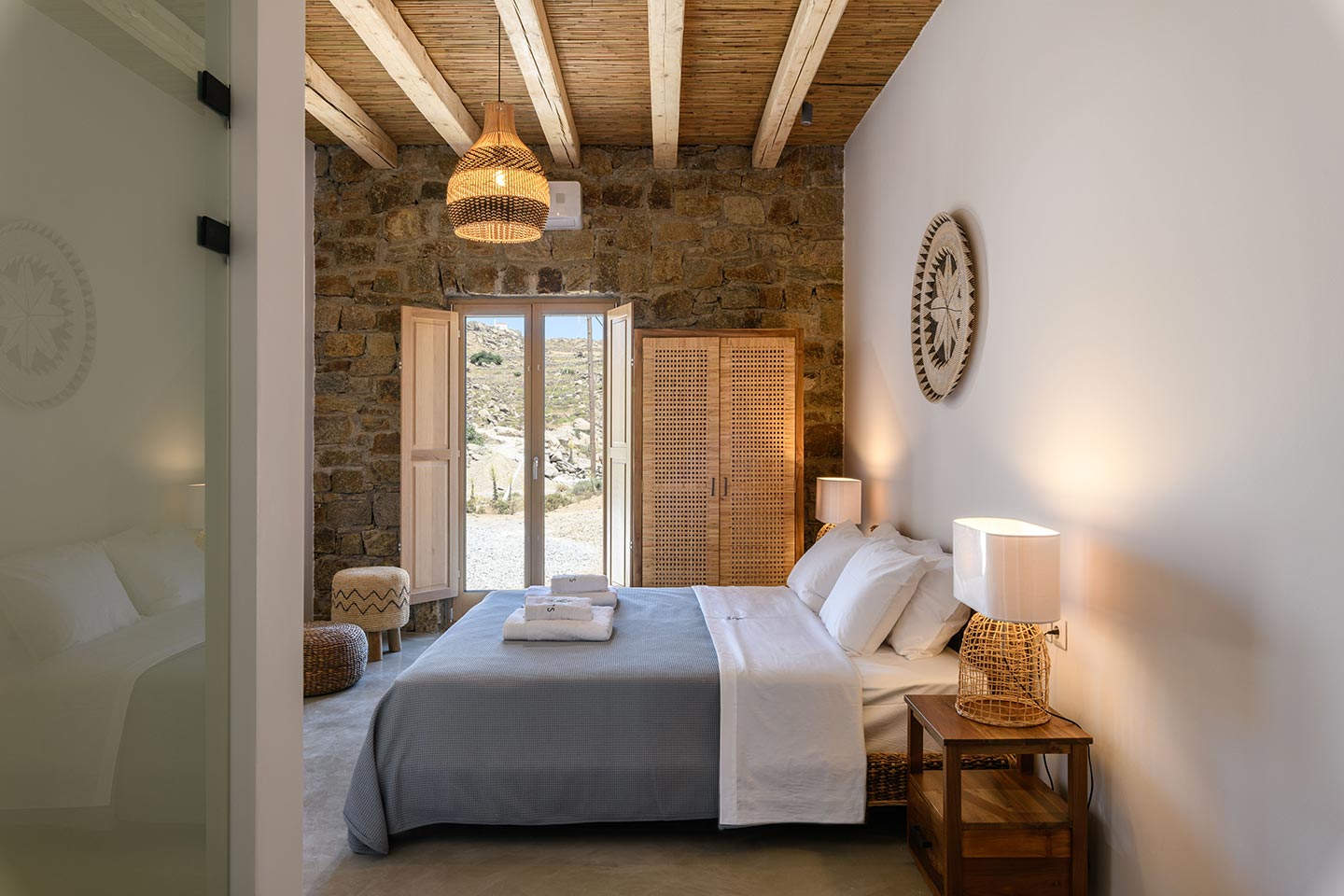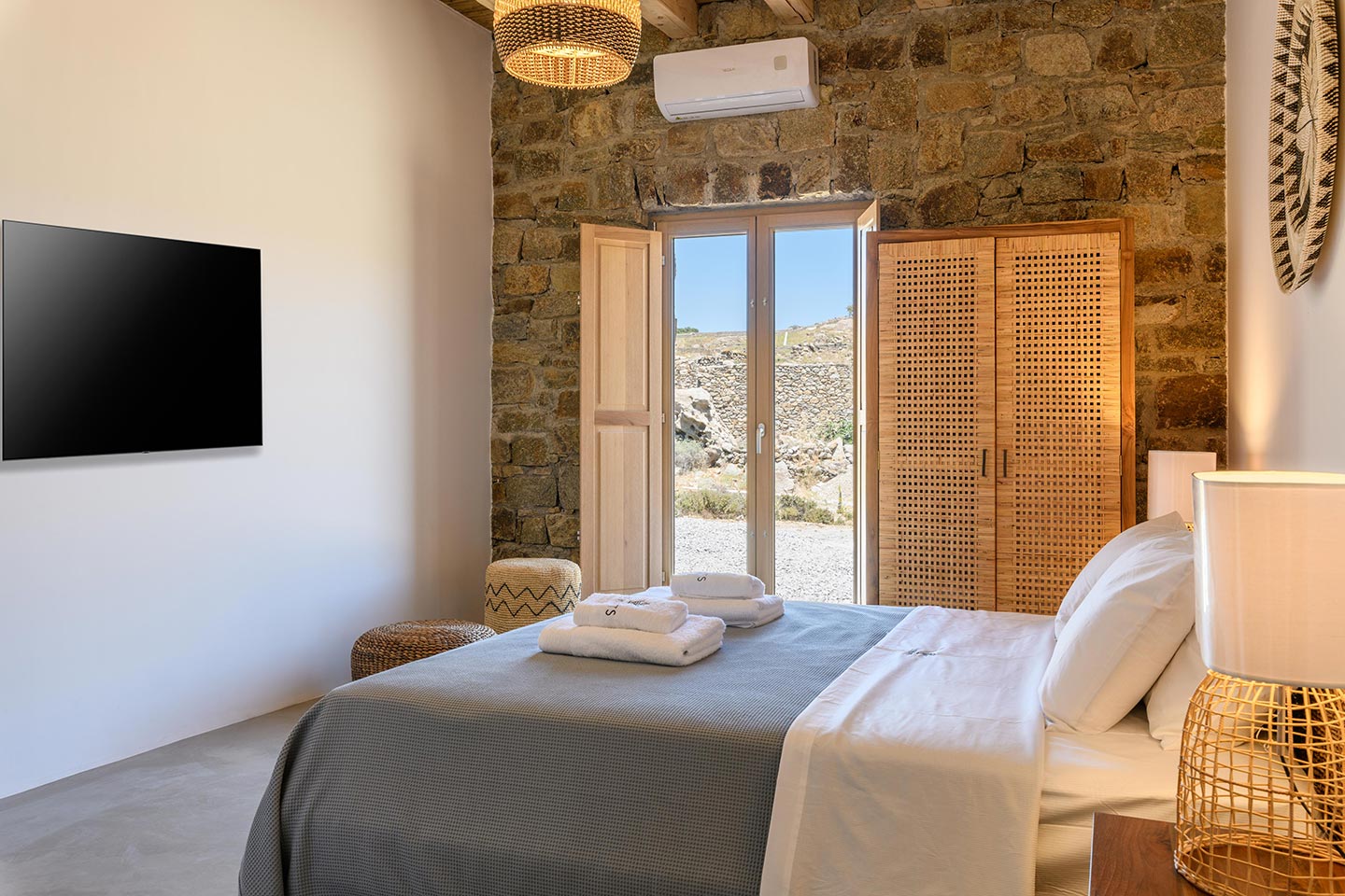 The location is convenient (15-20min walking, 3-5min drive) for all of the south and west beaches of Mykonos including venues like Scorpios, Soho House Rocs, Branco, Nammos, Kalua, Santanna, Paradise Beach Club, Cavo Paradiso and even Jackie-O.