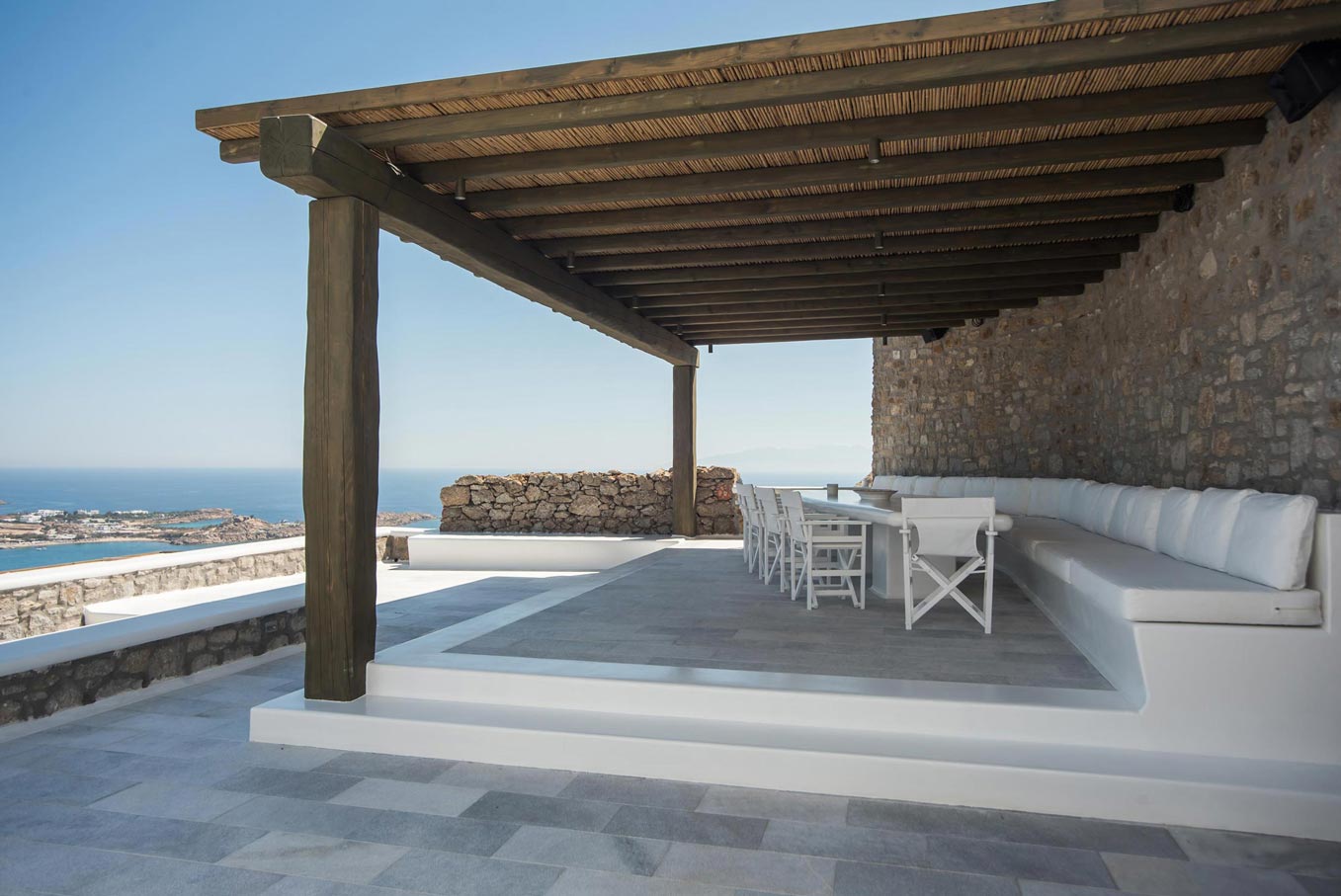 What better way to indulge in Mykonos’ seductive offerings, its ritzy nightlife, its gourmet restaurants, its plethora of clubs, its fun day parties, its amazing beaches, than to stay in a high-end luxury villa in the most prestigious and cosmopolitan region of the island. Paz is a 1.100 sqm newly built residence, superbly positioned on a slope in the exclusive location of Agios Lazaros, overlooking the world-famous beach of Psarou, providing a prime solution for large groups, international jet-setters and lifestyle lovers. With sweeping vistas over the most popular gulf of the island and the crystal blue of the Aegean sea, as far as the eye can see, this impressive waterfront villa is the perfect summer retreat for an unforgettable stay. Yet, its real power lies in the variety of the outdoor spaces: On the enormous terraces of approximately 1.550 sqm, furnished with sun loungers and inviting sofas with plenitude of cushions, you will revel premium outside living to the full.