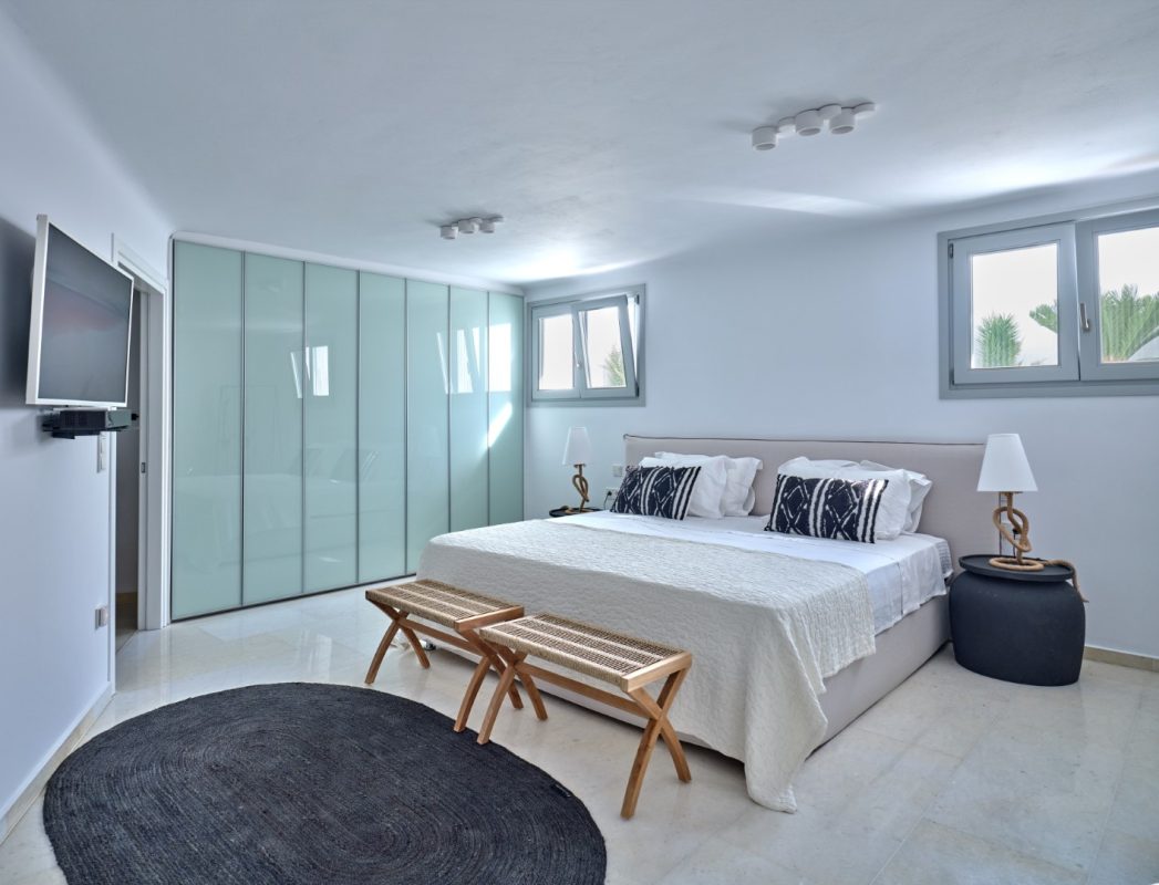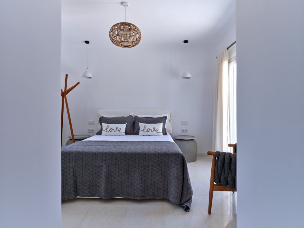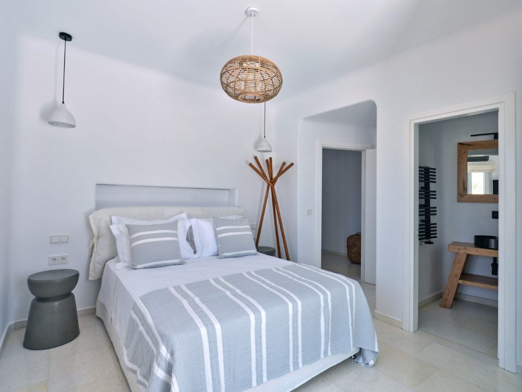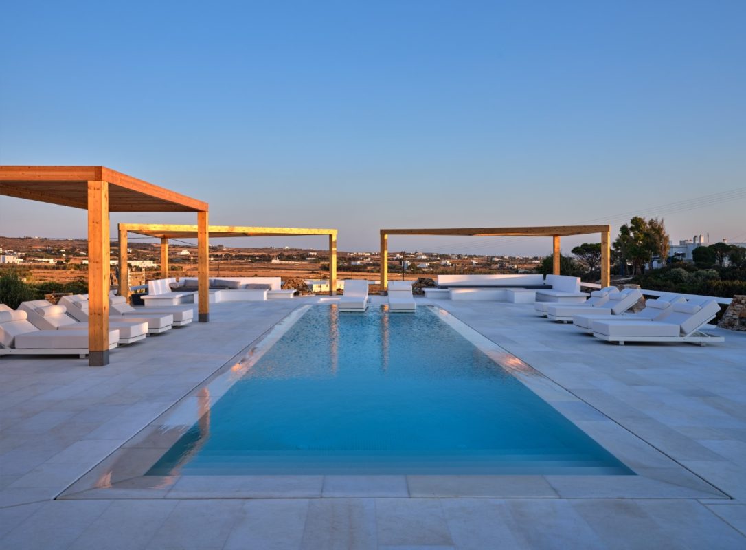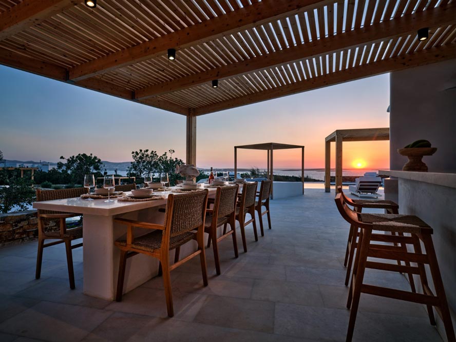 Villa Pegasus sits elegantly on an amazing plot in an unparalleled position facing the Aegean sea and located just 300 m from a swimming spot close to Agia Irini. It is a complex that consists of 3 independent villas, each one with its private pool. Villa Pegasus combines contemporary clean line architecture with a Cycladic influence creating a modern luxurious setting both in and outdoors. Indoors the Villa’s white predominates with wooden and marble touches.