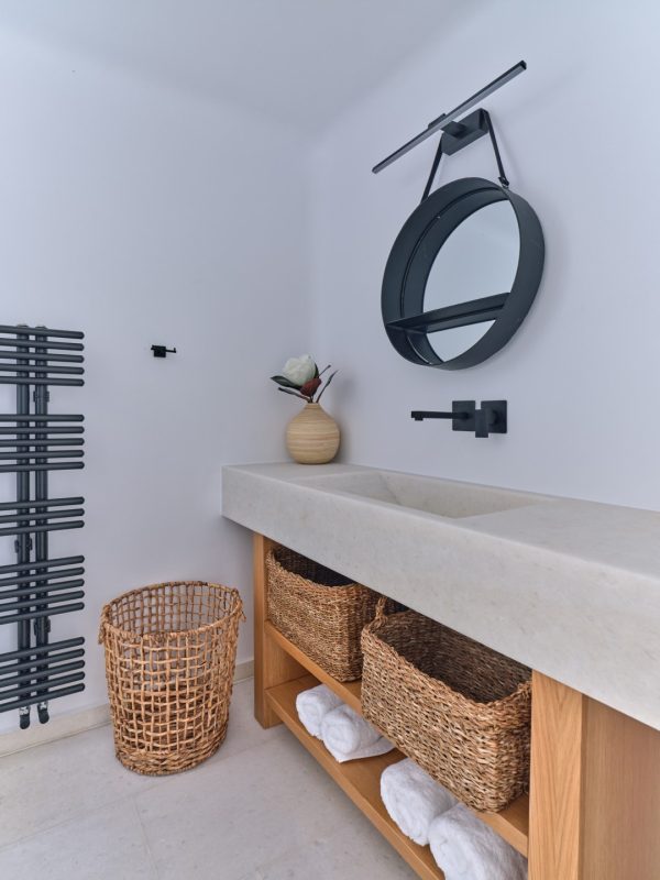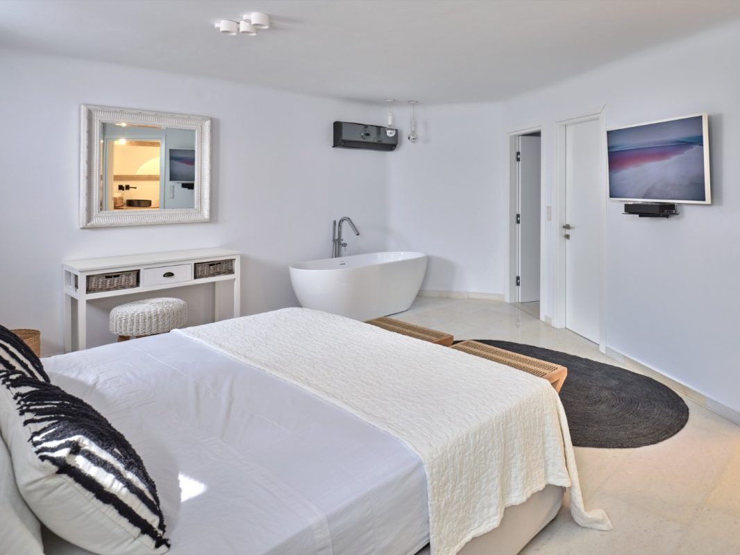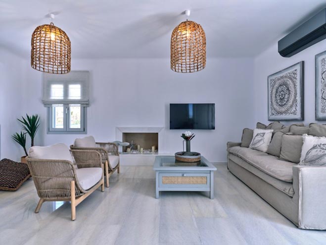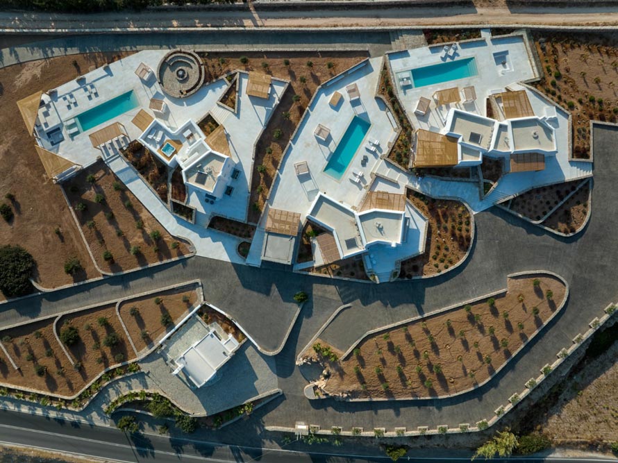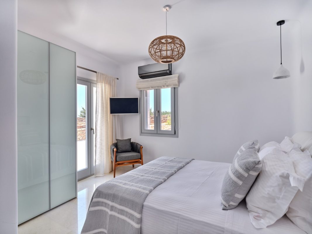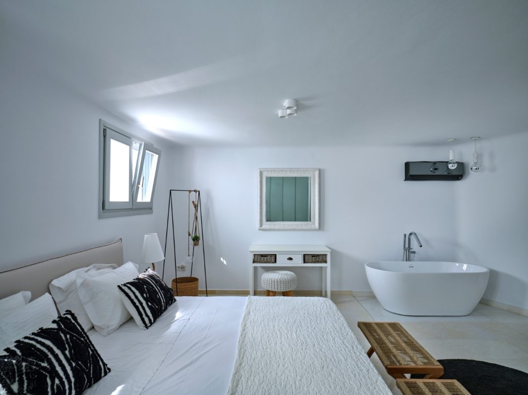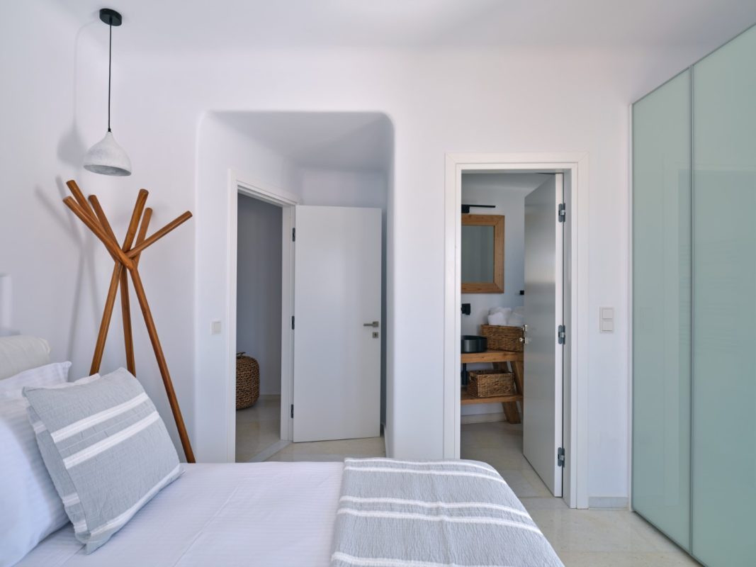 Villa Pegasus sits elegantly on an amazing plot in an unparalleled position facing the Aegean sea and located just 300 m from a swimming spot close to Agia Irini. It is a complex that consists of 3 independent villas, each one with its private pool. Villa Pegasus combines contemporary clean line architecture with a Cycladic influence creating a modern luxurious setting both in and outdoors. Indoors the Villa’s white predominates with wooden and marble touches.
