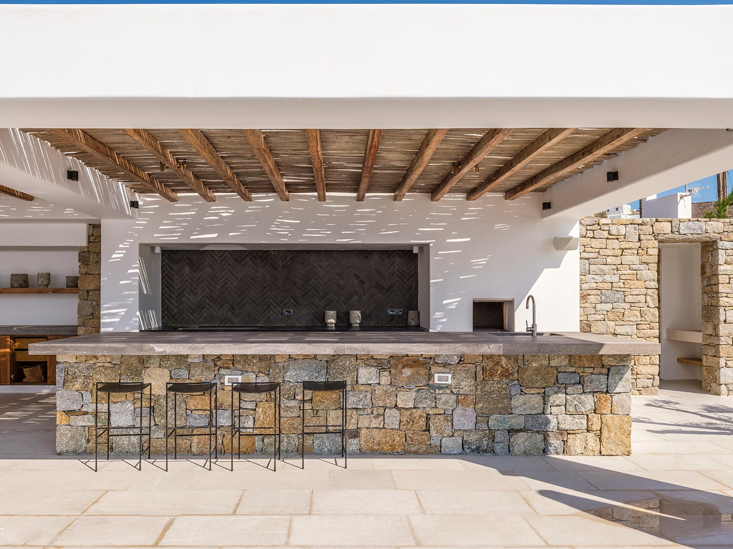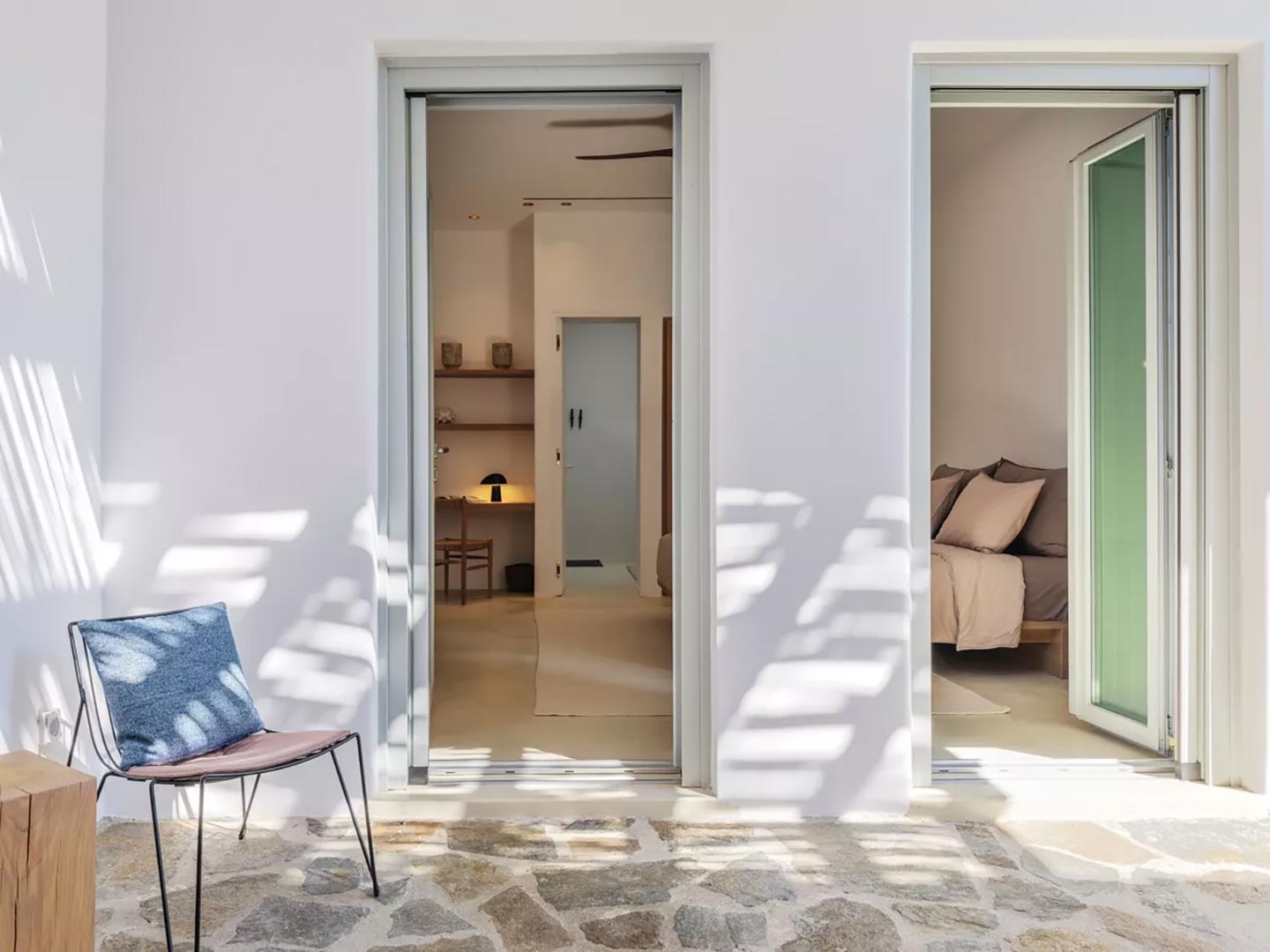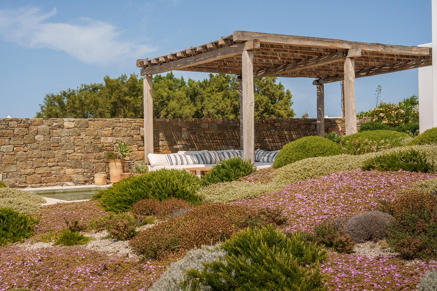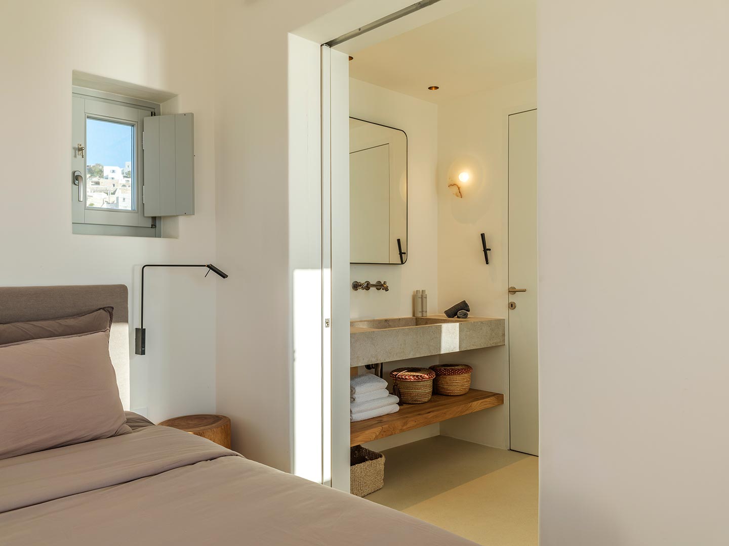 Perched on a southwest-facing cliff in Kanalia, Villa Pennie is a 2023 architectural gem designed by K Studio, offering panoramic views of Delos, Renia, and Tinos. With its own small private beach and a stunning heated marble pool, the villa delivers exceptional exclusivity and comfort. Designed with timeless Greek aesthetics, Villa Pennie features natural materials, whitewashed lines, and bright, open living spaces that seamlessly blend indoor and outdoor living. Spacious terraces, warm textures, and abundant natural light create a serene atmosphere ideal for relaxation. As the sun sets, the villa transforms into a sanctuary of color and calm, perfect for poolside lounging or alfresco dining while taking in breathtaking Aegean views.