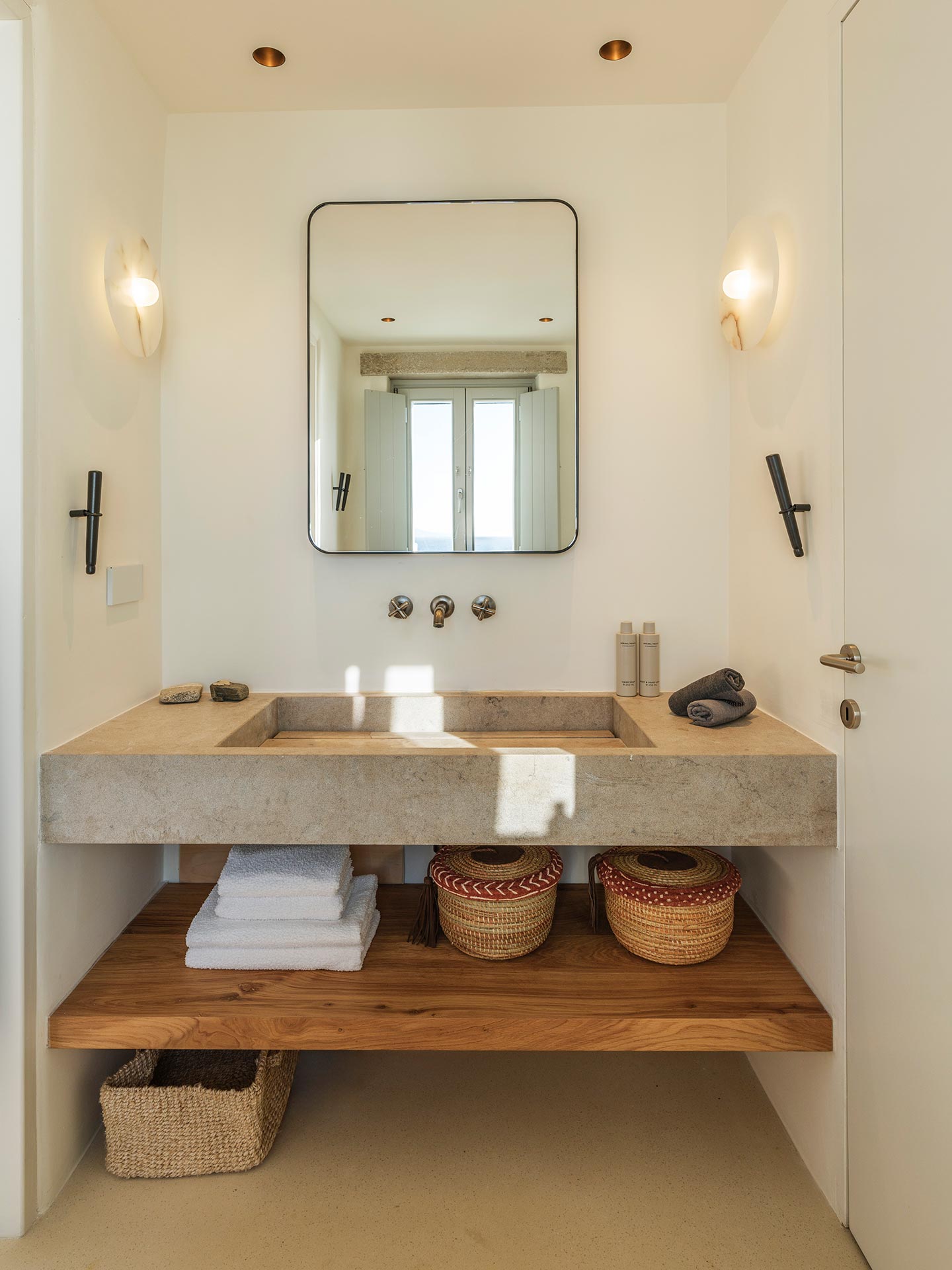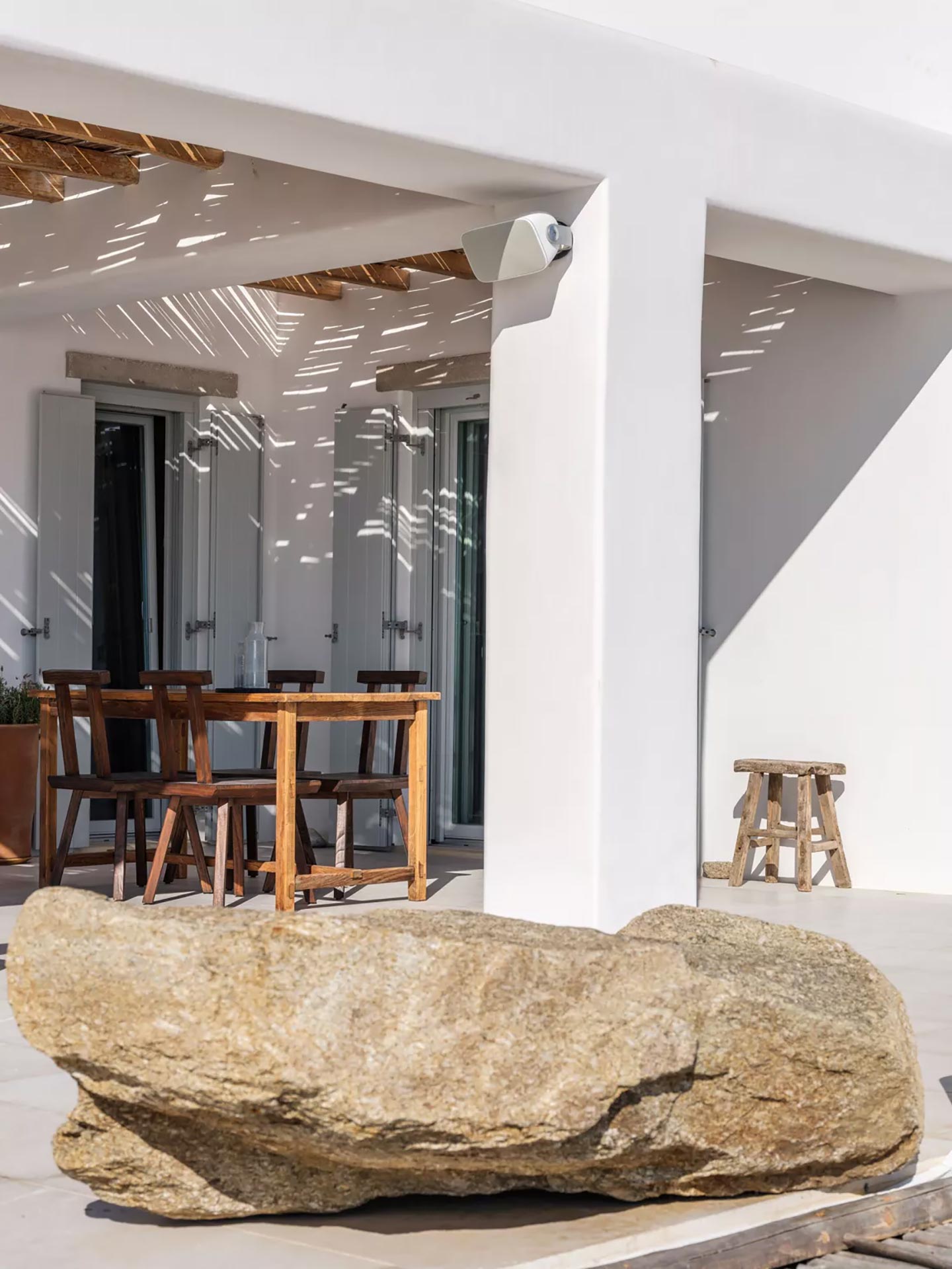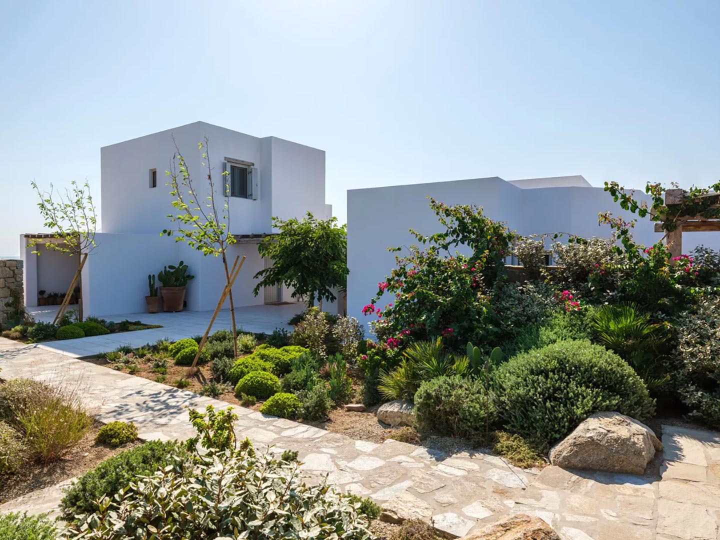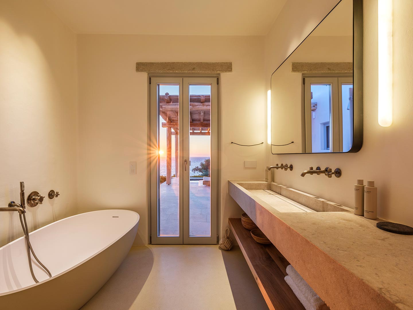 Perched on a southwest-facing cliff in Kanalia, Villa Pennie is a 2023 architectural gem designed by K Studio, offering panoramic views of Delos, Renia, and Tinos. With its own small private beach and a stunning heated marble pool, the villa delivers exceptional exclusivity and comfort. Designed with timeless Greek aesthetics, Villa Pennie features natural materials, whitewashed lines, and bright, open living spaces that seamlessly blend indoor and outdoor living. Spacious terraces, warm textures, and abundant natural light create a serene atmosphere ideal for relaxation. As the sun sets, the villa transforms into a sanctuary of color and calm, perfect for poolside lounging or alfresco dining while taking in breathtaking Aegean views.