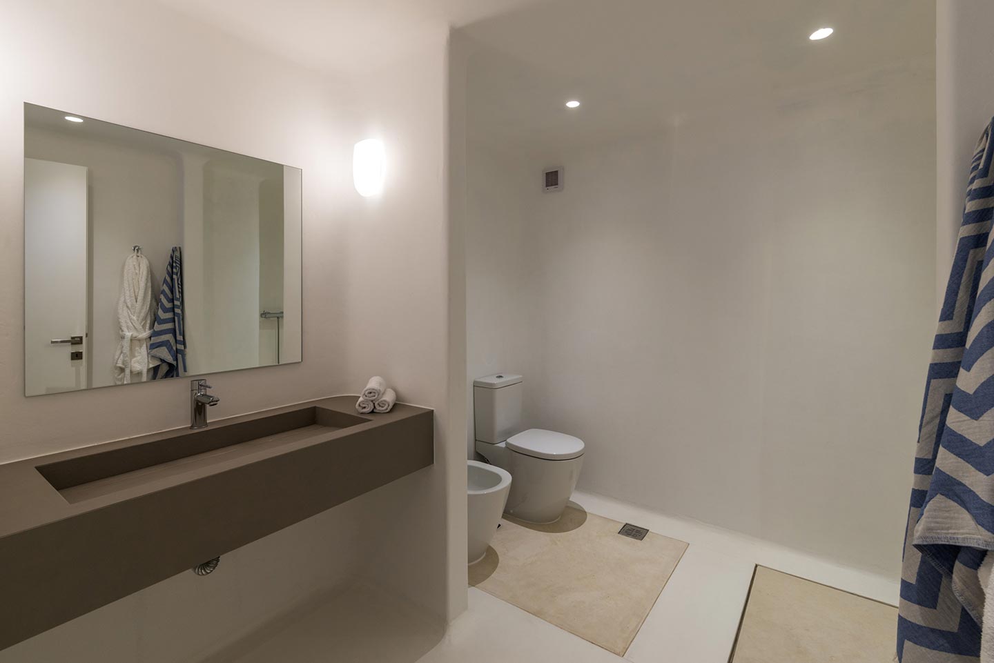 Three bedrooms each with queen size bed, A/C, en-suite bathroom with shower, hairdryer, Wi-Fi, sea view