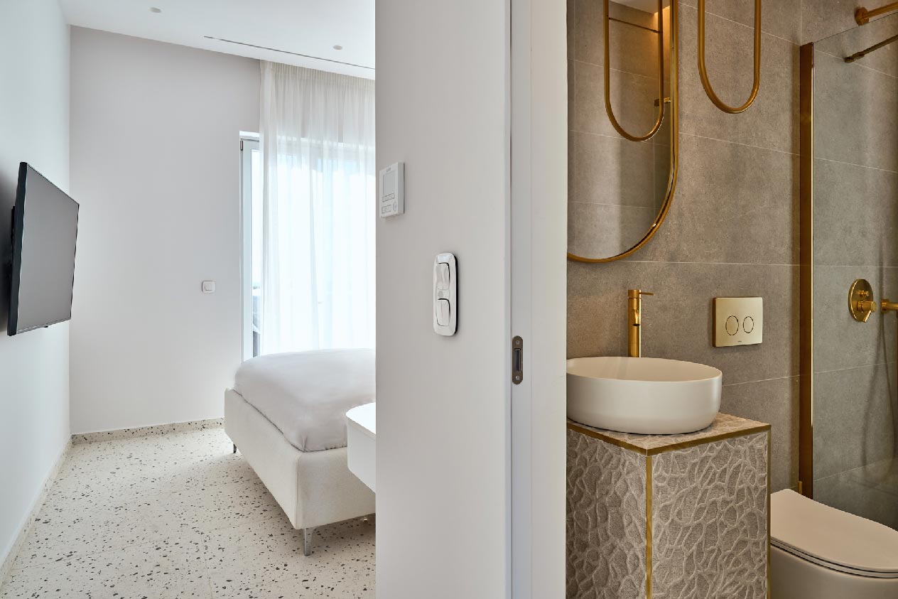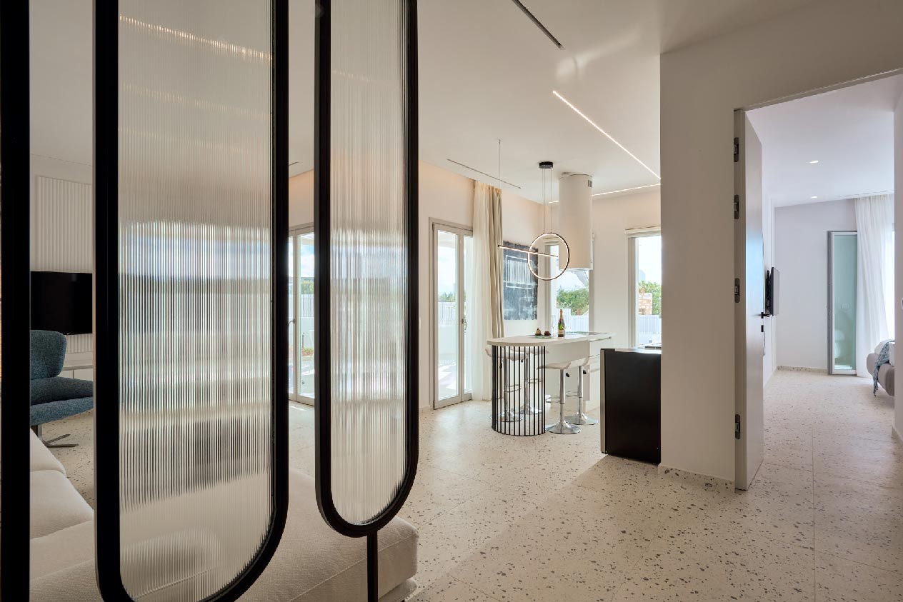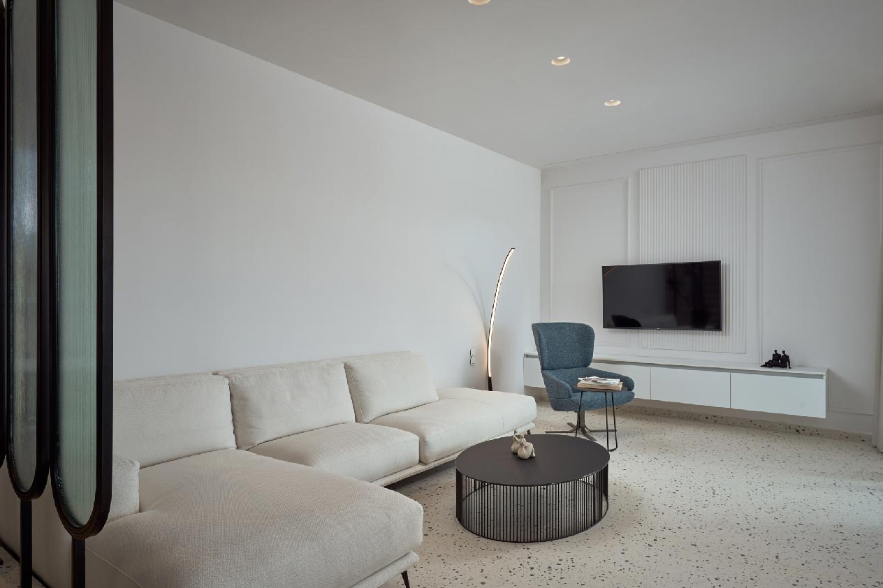 Outside, the villa’s extensive, white-themed outdoor area boasts a private swimming pool for refreshing mornings or evenings.
