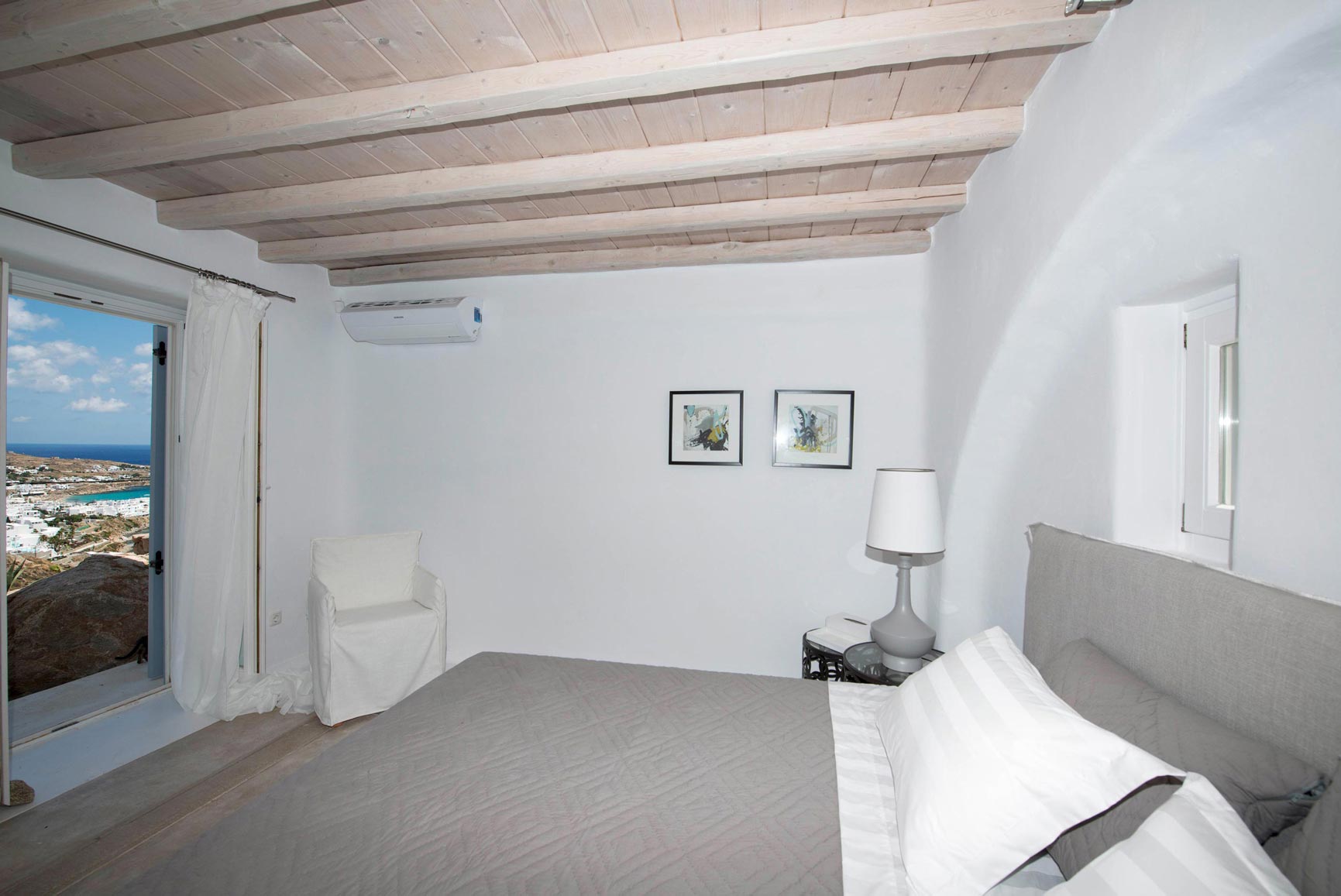 A wonderful 200 m² villa featuring 4 bedrooms with en-suite bathrooms and a dazzling private heated pool, overlooking the renowned Psarou beach. Beautifully crafted with built-in arches, apses and beautiful en-suite bathrooms, the villa pays homage to distinctive Cycladic architecture. A unique villa, just a 5-min drive from Psarou beach, where relaxed atmosphere, blends with the ultimate island lifestyle.