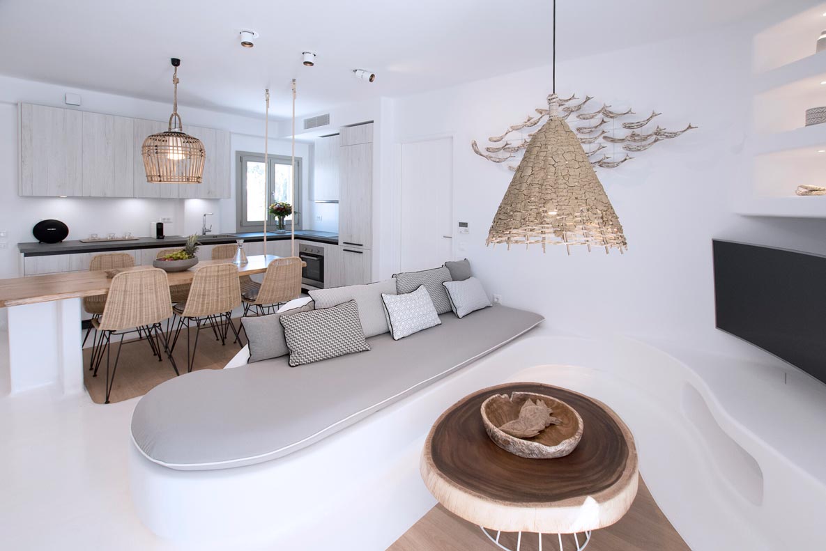 Set in one of the most privileged locations of northeastern Paros, villa "Siren" is a gorgeous three bedroom home with phenomenal views of Naousa and a breathtaking sunset. True to the vernacular architecture, the structure is composed of typical Cycladic curves, clean lines and dazzling white surfaces that create an interesting contrast with the soothing colors of the sea and sky.