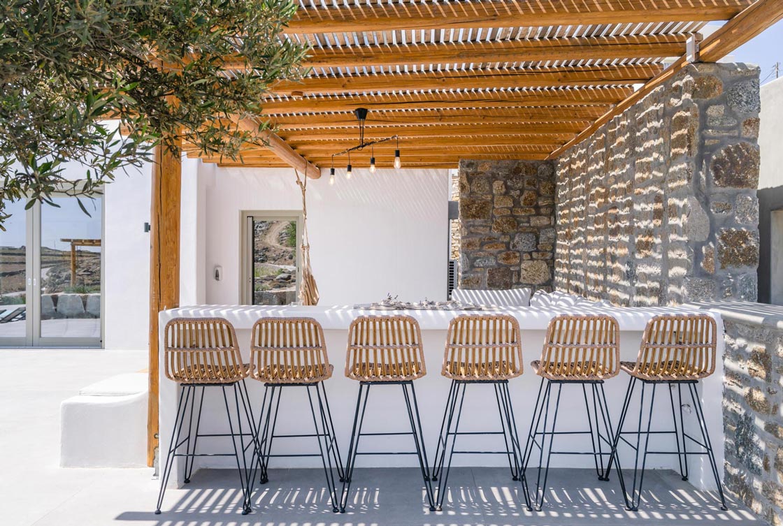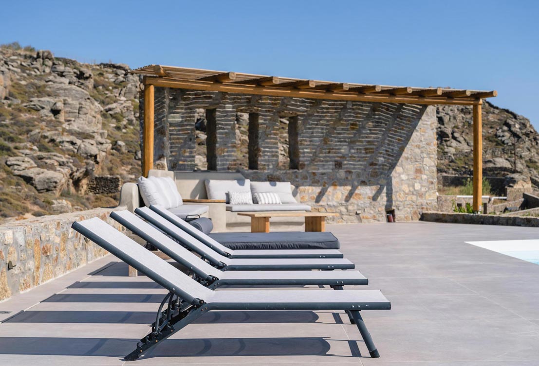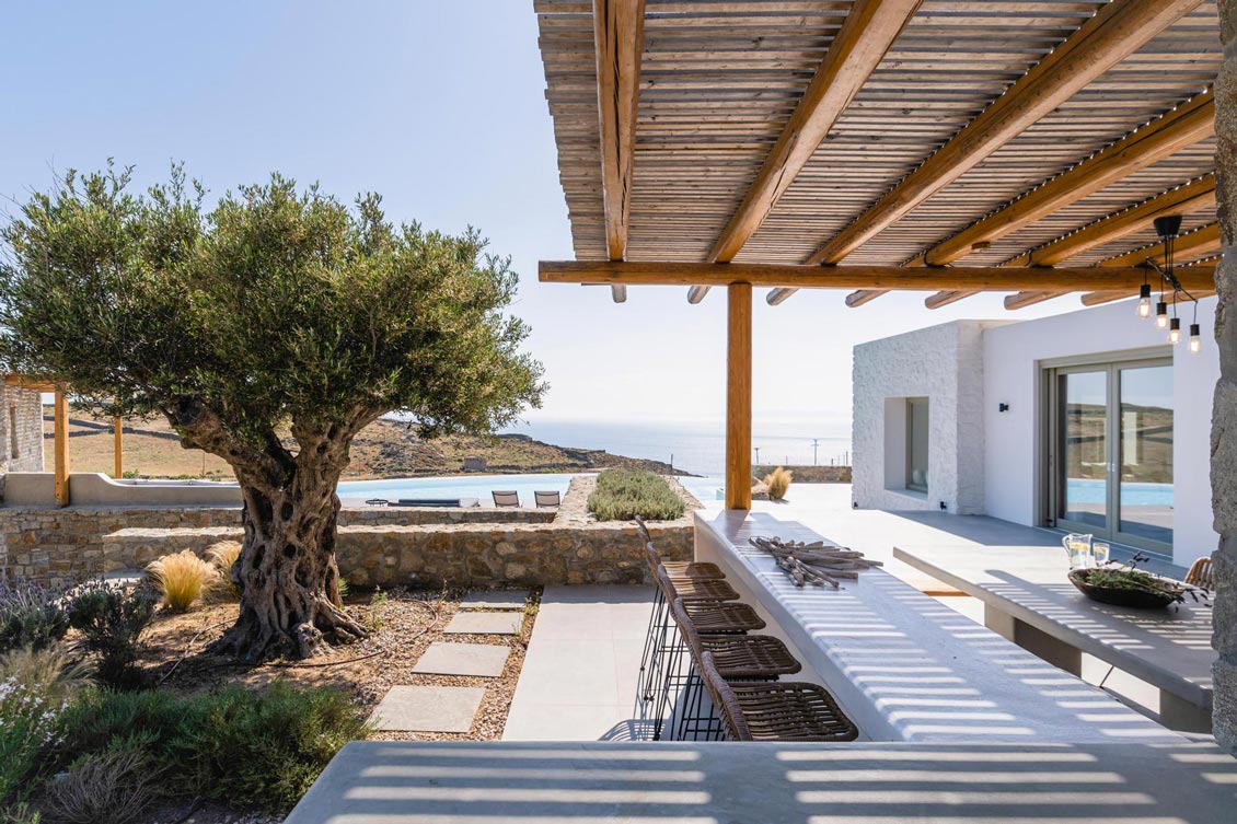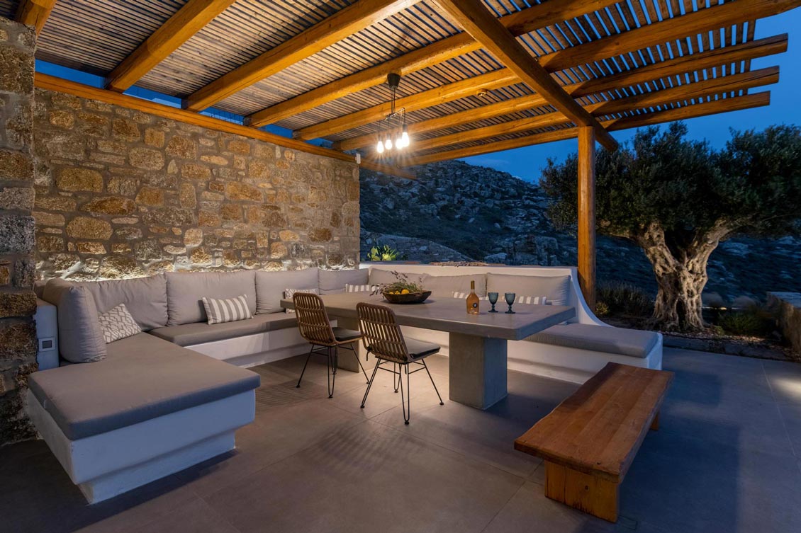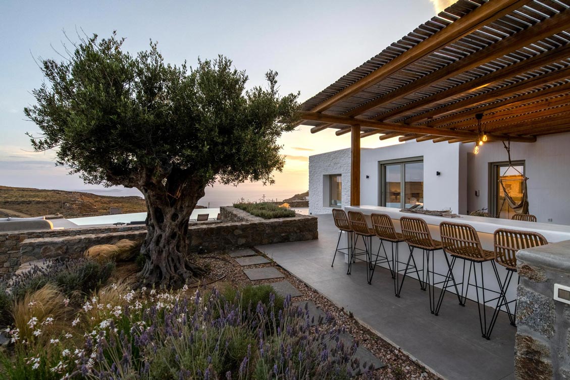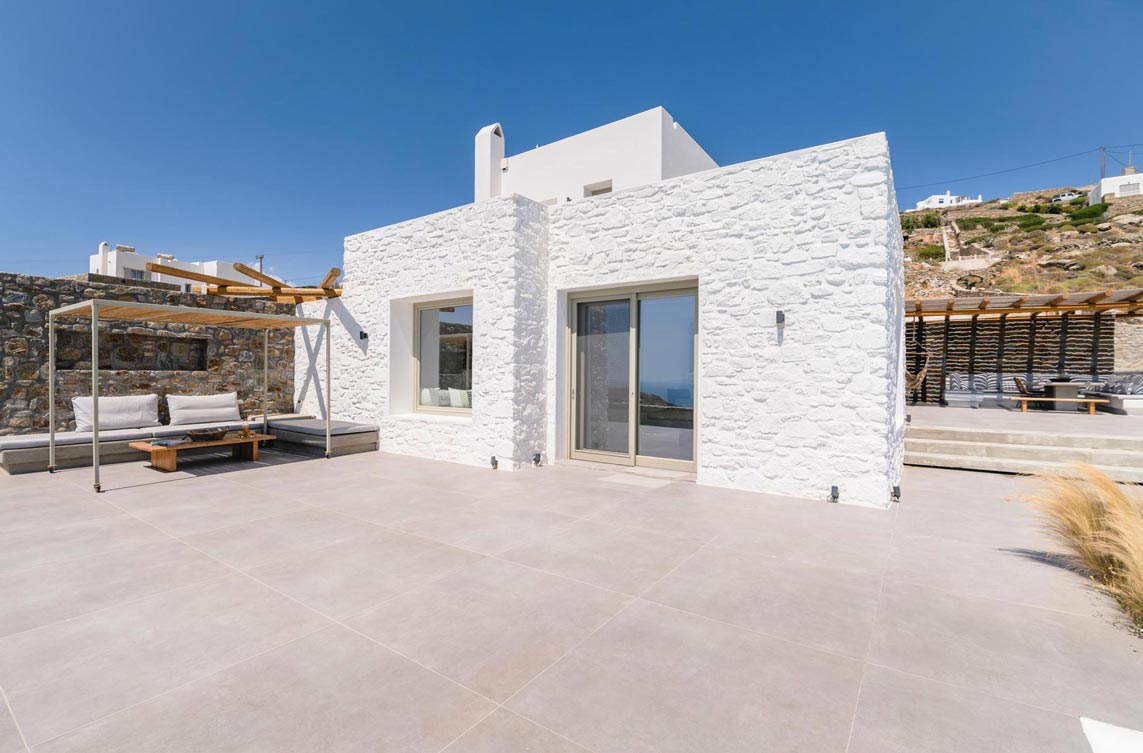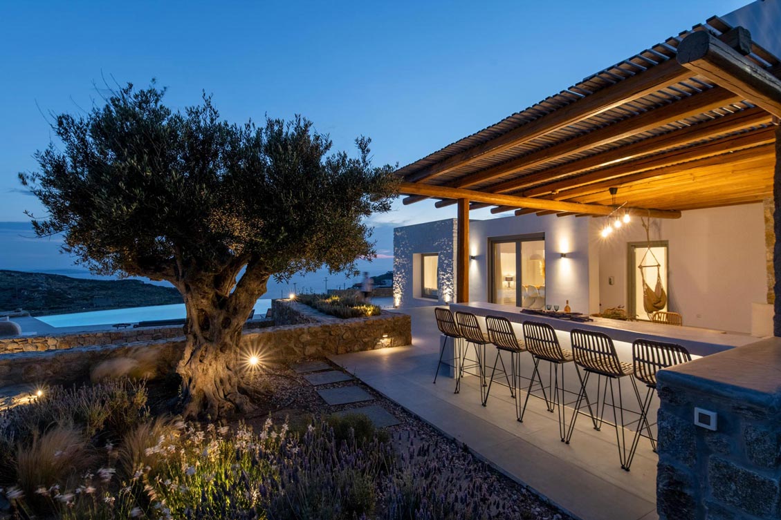 Villa Sol is a brand new villa, which was built in 2019. Nestled in an enchanting landscape idyllically situated in the scenic area of Kastro in the effervescent island of Mykonos. The property extends on a large plot of 2.260m2 overlooking the western Aegean Sea and Syros island. The villa is 5 minutes from Agios Stefanos beach, enjoying spectacular sunset, sea view, and island views; while it has all the advantages of being in quite and secluded surroundings, just a 8 minute drive from Mykonos town.