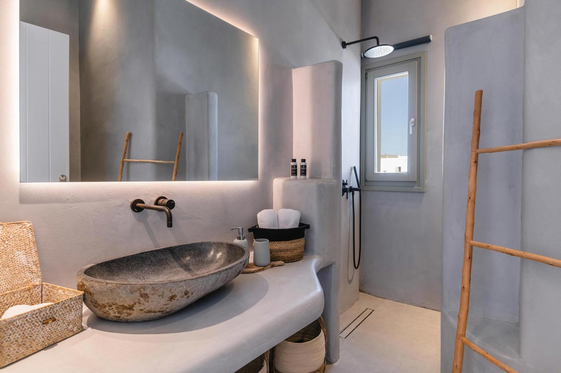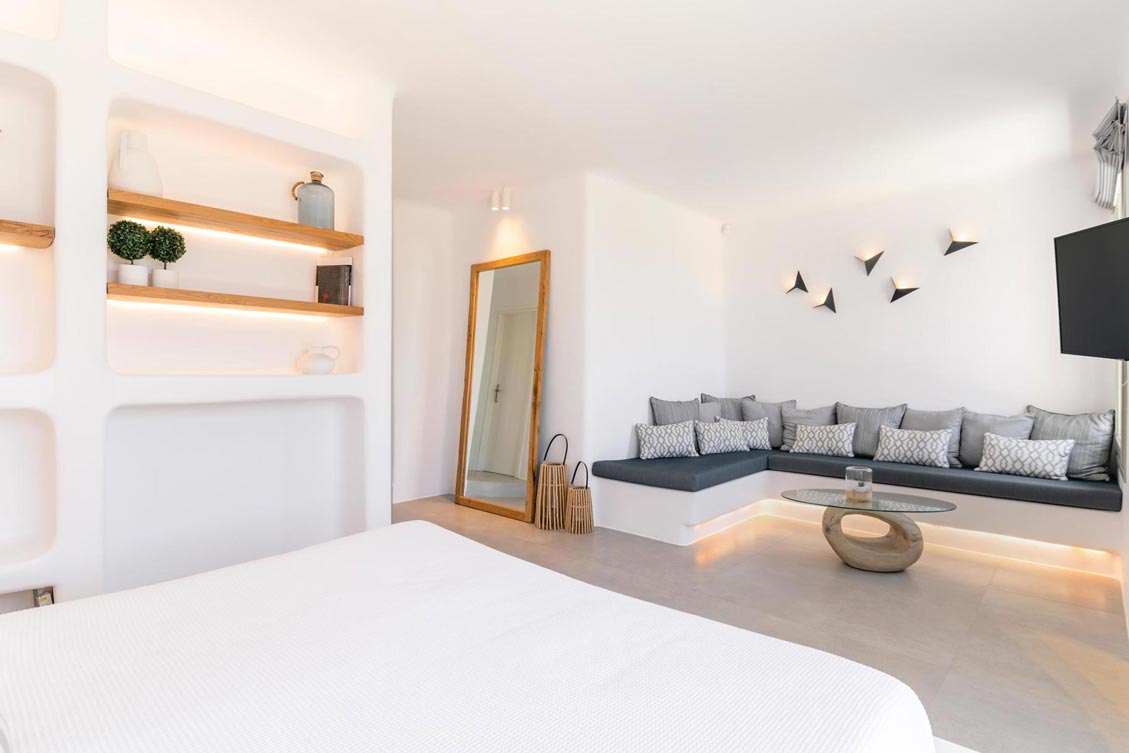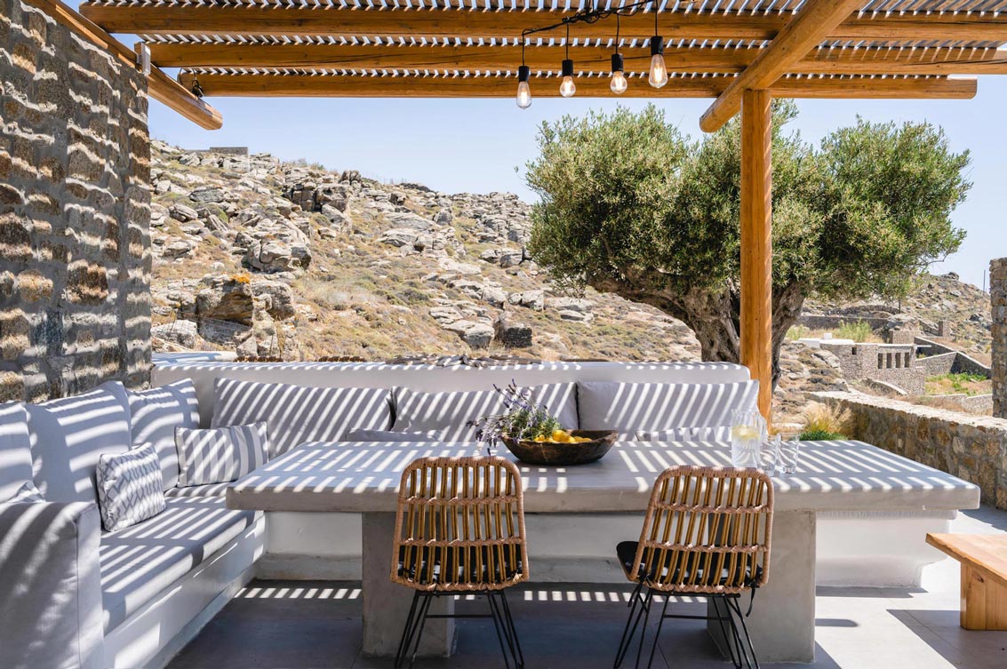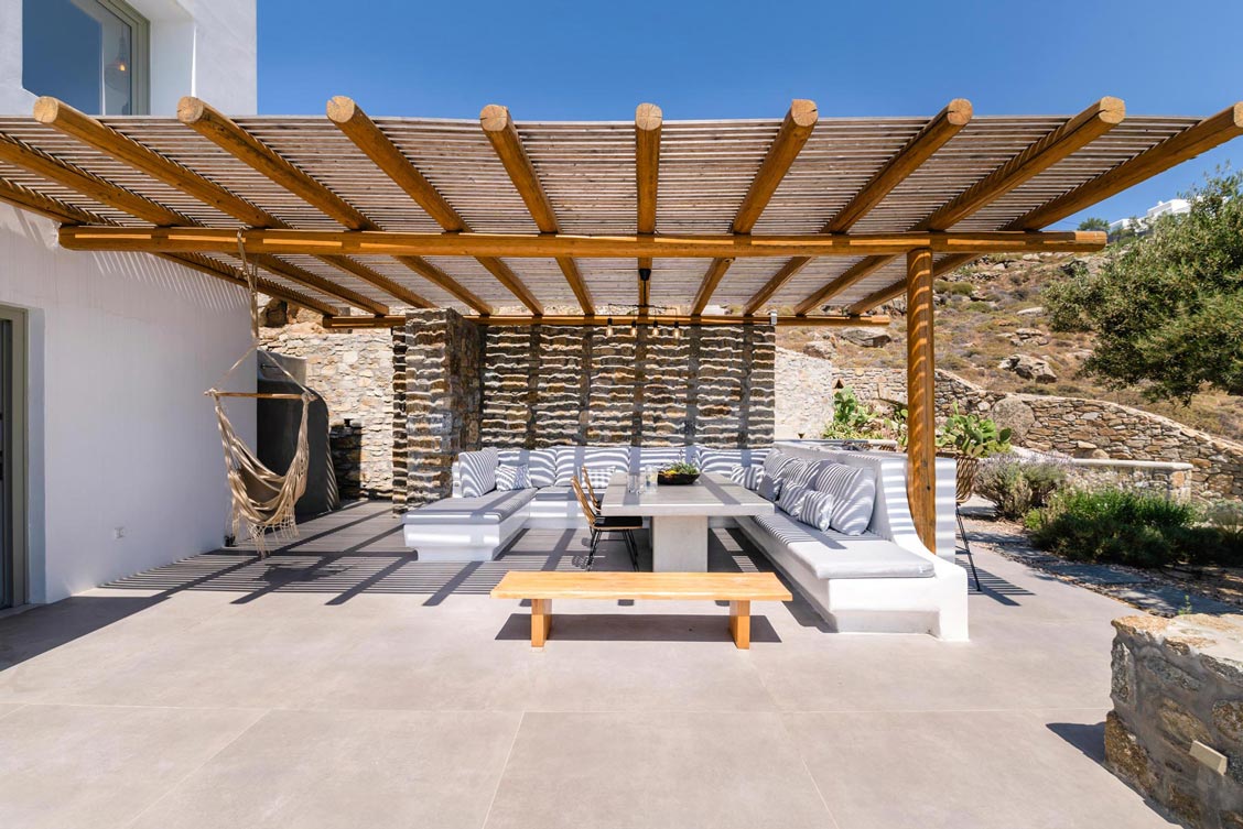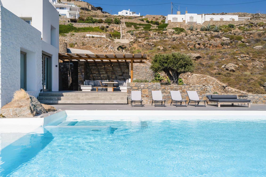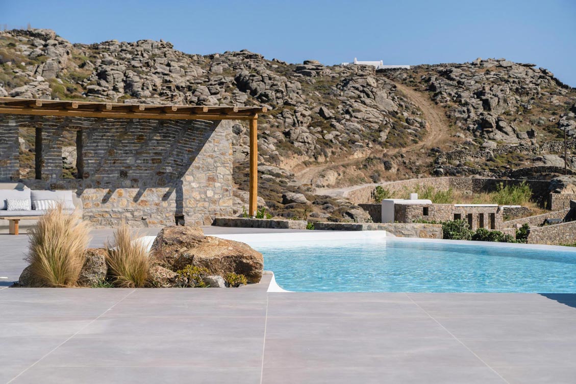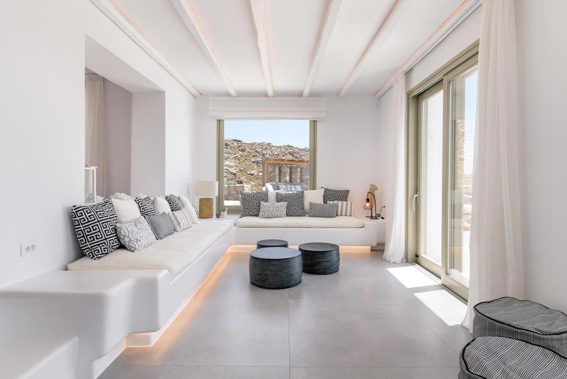 Villa Sol is a brand new villa, which was built in 2019. Nestled in an enchanting landscape idyllically situated in the scenic area of Kastro in the effervescent island of Mykonos. The property extends on a large plot of 2.260m2 overlooking the western Aegean Sea and Syros island. The villa is 5 minutes from Agios Stefanos beach, enjoying spectacular sunset, sea view, and island views; while it has all the advantages of being in quite and secluded surroundings, just a 8 minute drive from Mykonos town.