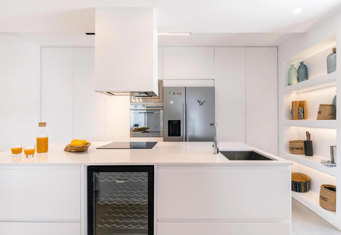 •   Opening to the exterior living room and dining area shaded by an atmospheric pergola