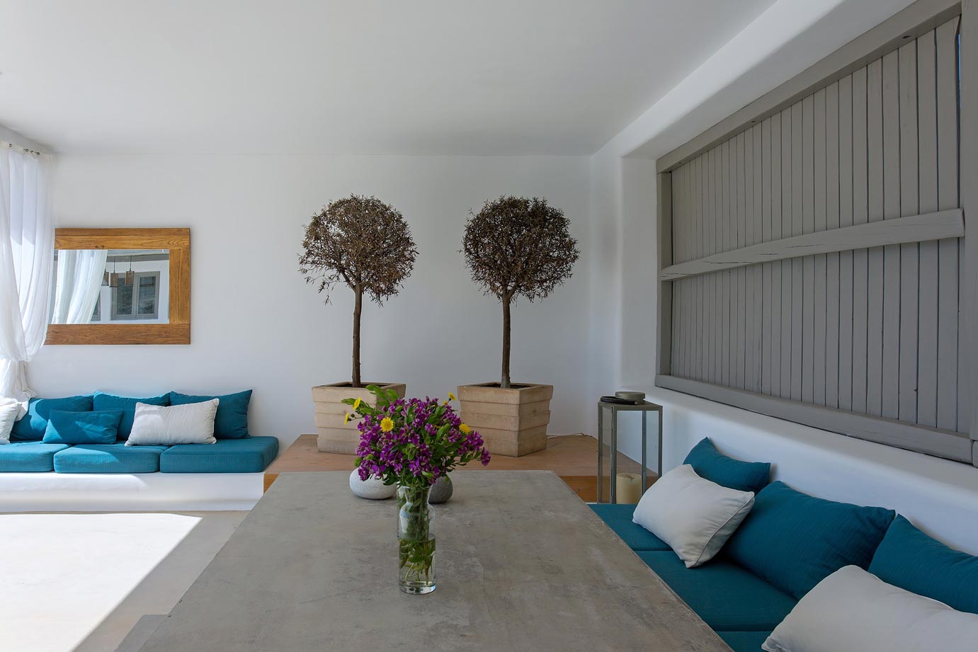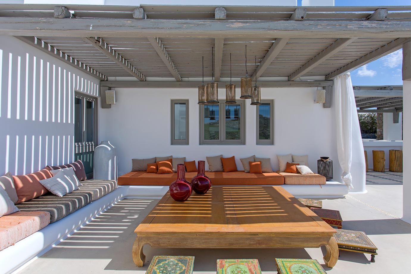 Villa Thea is a unique, luxury 300 sq.m villa, located in a 4,000 plot on the southeastern tip of the island and very close to the beaches of Kalafatis, Agia Anna, Lia, Kalo Livadi, Elia, Ftelia, Panormos and Agios Sostis. A luxury villa of minimalist design that has been featured in the magazine “Mykonos Villas” for three years in a row. Ideal for young, spirited people who want to live the time of their life on Mykonos. This luxury estate is composed by the main villa and 2 guest houses. It can accommodate 7 couples or 14 people.
