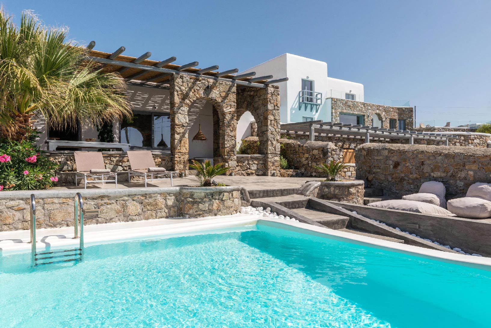 The location is also very appealing, within easy reach of the town of Mykonos. The outdoor common areas consist mainly of the private swimming pool, relaxing, and romantic environment, designed to contribute to your rejuvenation during your vacation on Mykonos Island. Swim in the comfortable swimming pool of the villa and enjoy the Mediterranean sun in one of the cozy sun lounges around the pool.