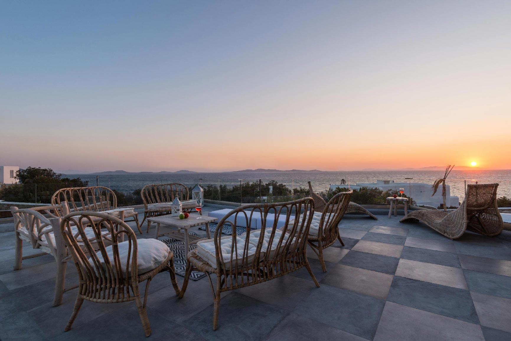 The villa is located at the Agios Stefanos area of Mykonos offering sunset and sea views. The villa consists of 10 fully equipped bedrooms with 9 bathrooms that may accommodate up to 20 guests. The interiors follow the white minimalist design with white surfaces and modern facilities.The exterior lounge and pool areas feature private pool with a sunset view, outdoors furniture and BBQ facilities. Those who cherish minimal design and a touch of tradition will find their match as this property is a great getaway for families and groups of friends alike.