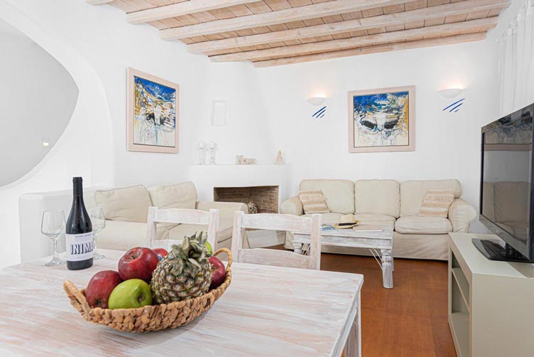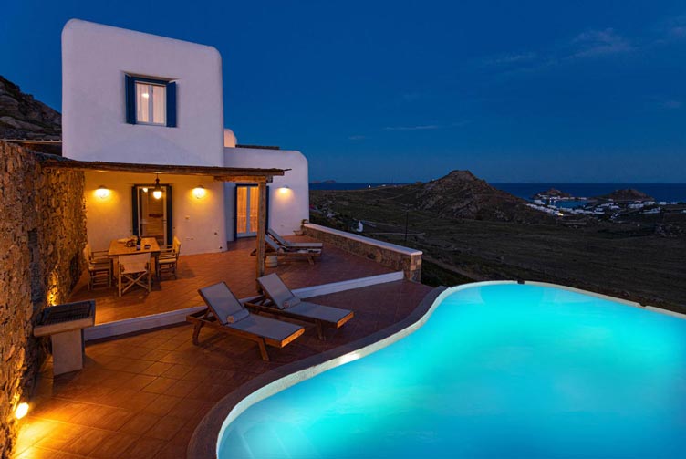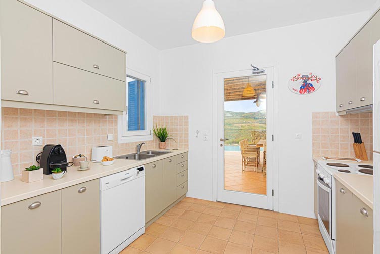 This villa is part of a brand-new family 2-villa complex located in the south part of the island. The location offers unique tranquility away from any other residential development and unobstructed stunning views towards Divouno and Kalafati Beach and the deep blue waters of the Aegean Sea. The villa is fully furnished and has 4 bedrooms with queen size beds, 4 bathrooms with shower, a fully equipped kitchen and a spacious living room. The planning is such that, up to 8 persons can be comfortably accommodated as bedrooms are located in the upper and lower floors of the house.